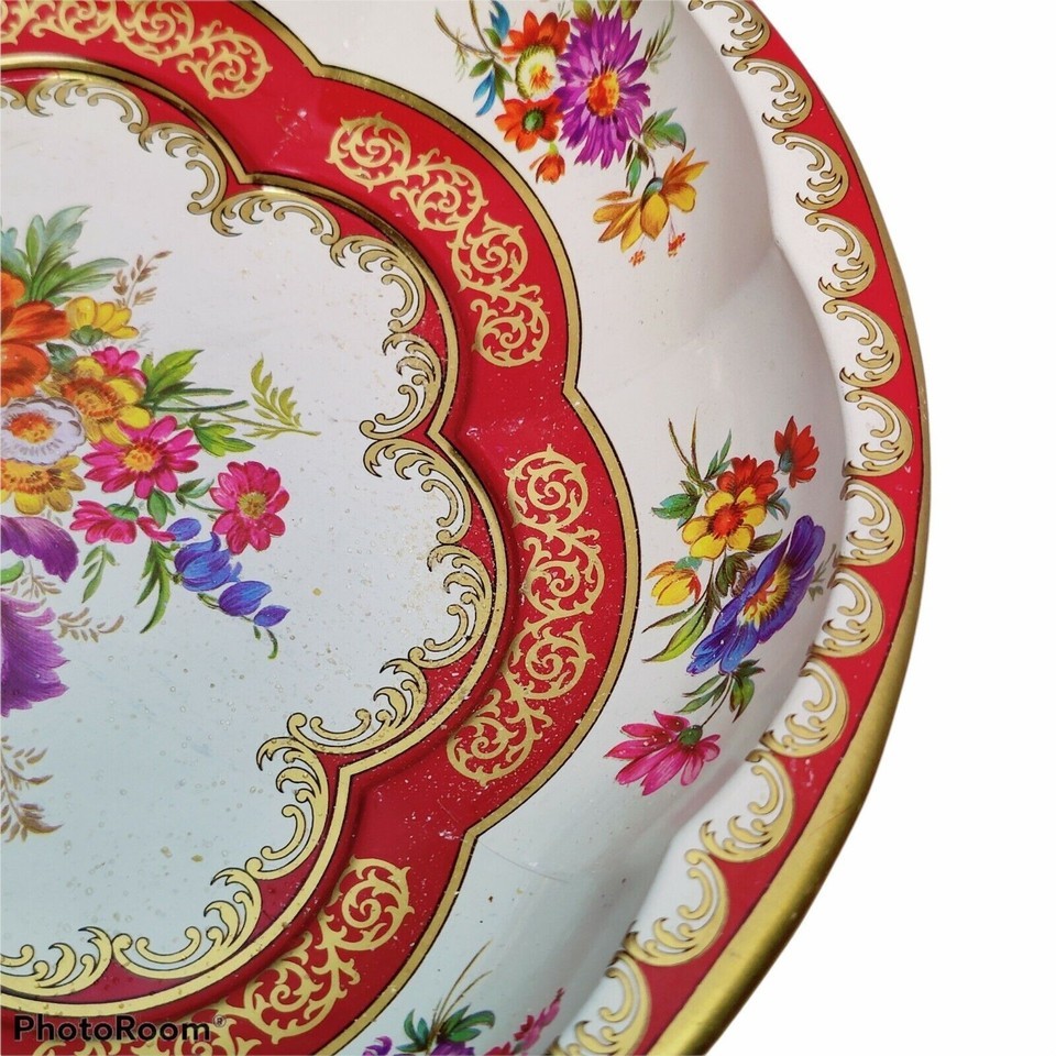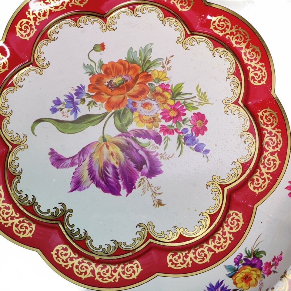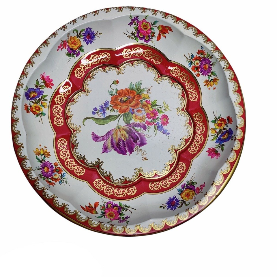 Daher White Red Gold Decorated 1971 10in Tin and similar items