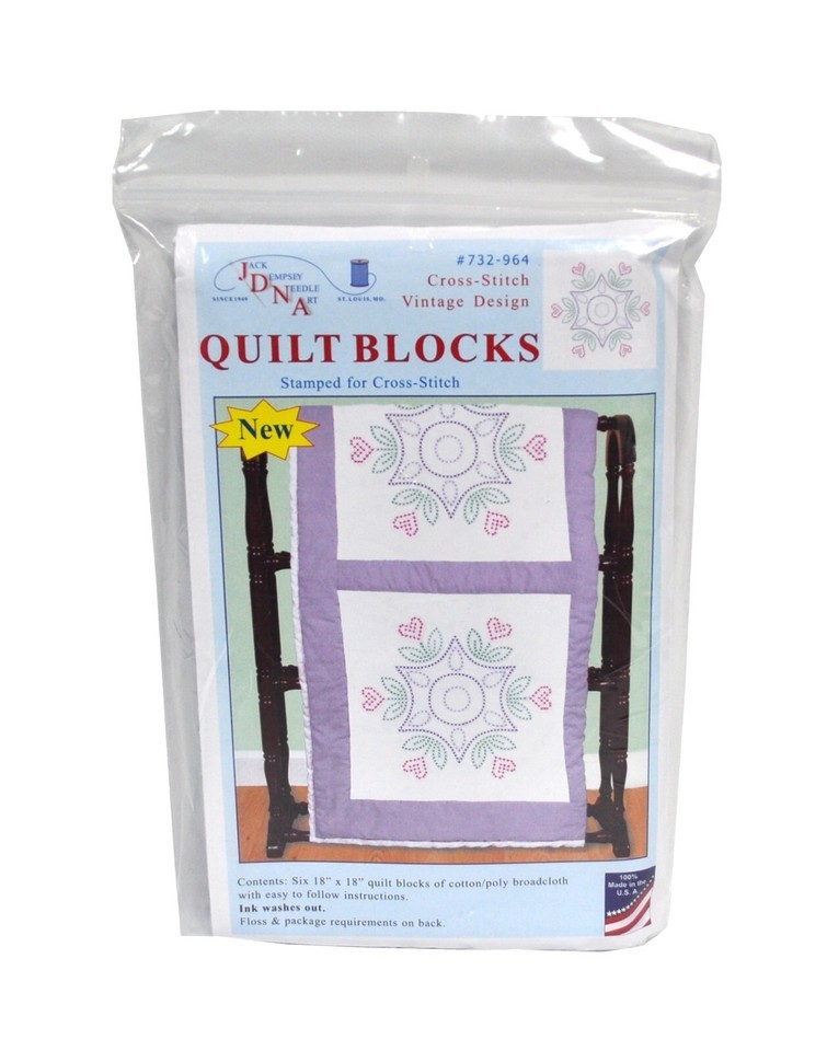 Jack Dempsey Needle Art Cross-Stitch Vintage Design 18 Inch Quilt Blocks.