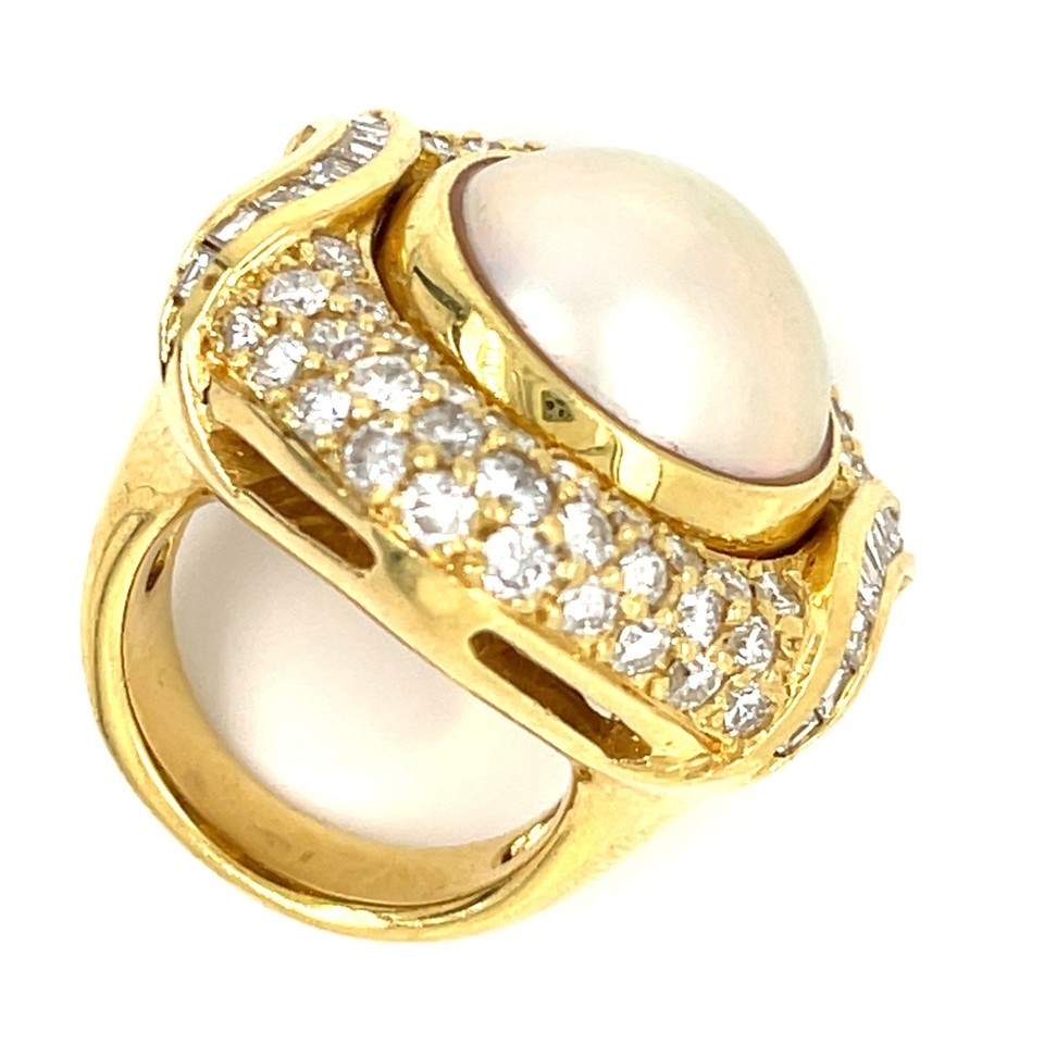 Mabe Pearl and Diamond Ring weight: 2.75 carats Mounted in 18k Gold Size: 5 1/4