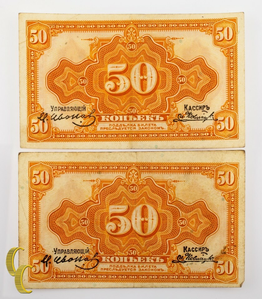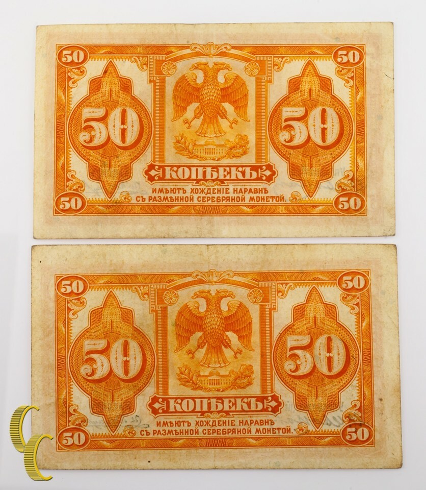 1919 Russia East Siberia 50 Kopeks 2 pc Note Lote (VF) Very Fine Condition