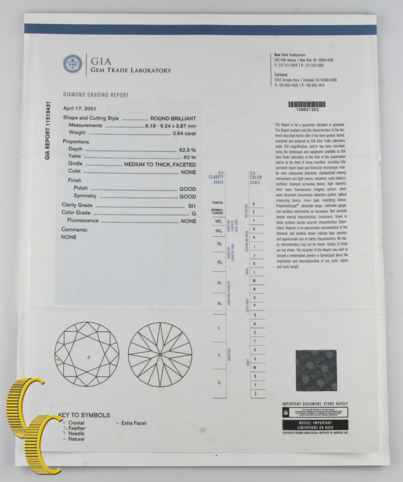 Authenticity Guarantee 0.94 Ct Round Diamond GIA Solitaire 18k White Gold Th...