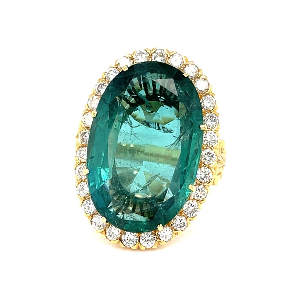 18k Gold 17.37ct Natural Green Beryl and 1.20ct Diamond Ring Size 7.5 14.8g