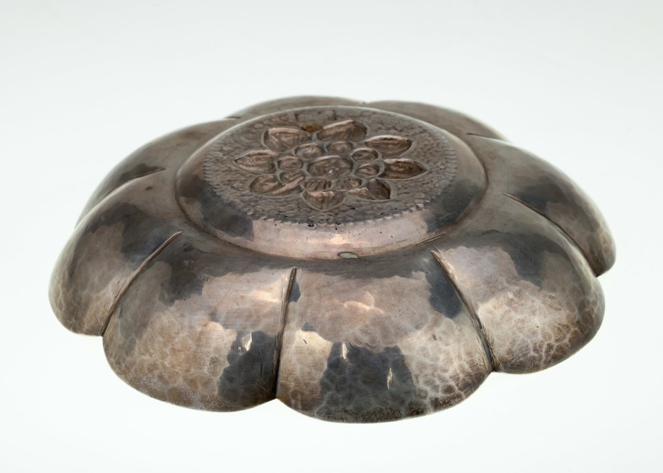 Features Lovely Hand-Chased Repousse Flower at Center