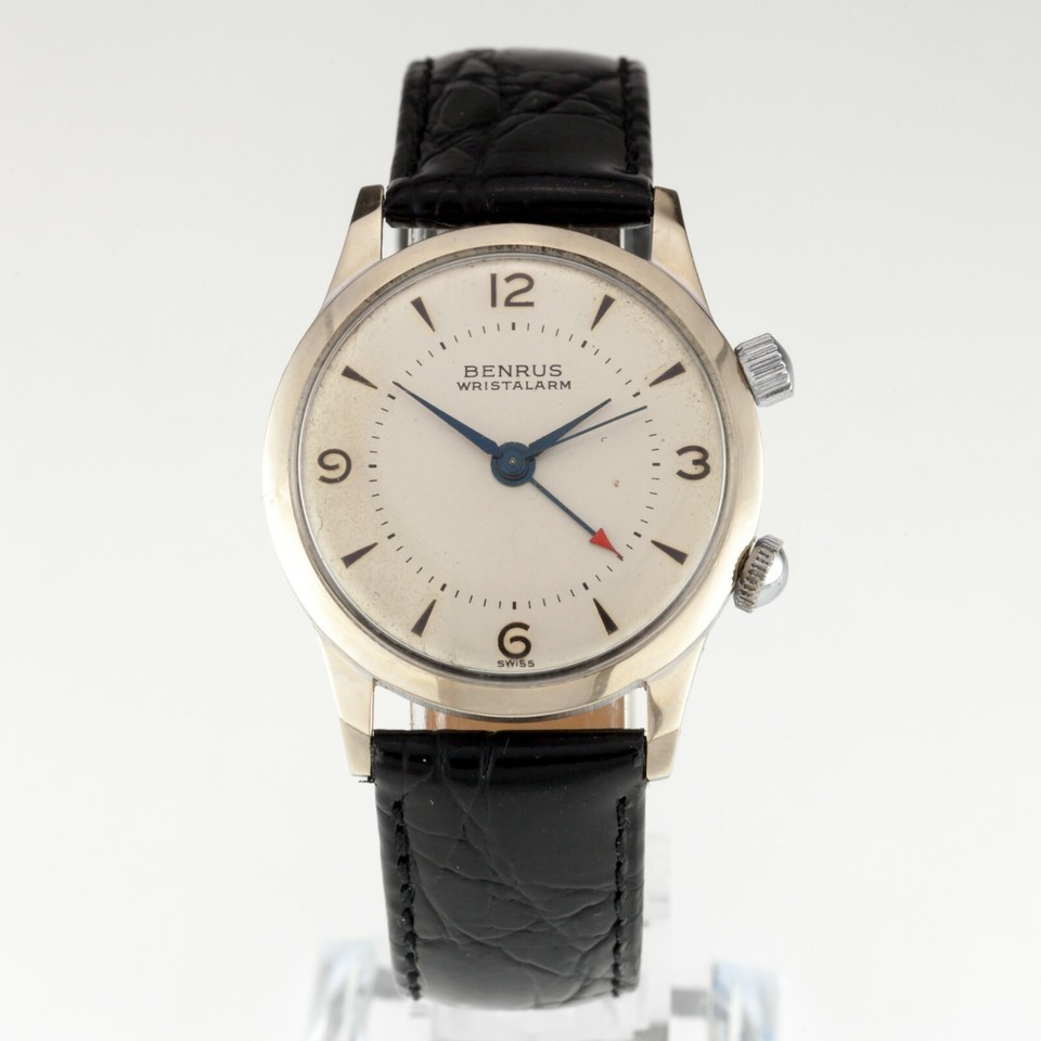 Benrus Men's Stainless Steel Wrist Alarm Mechanical Watch w/ Leather Band