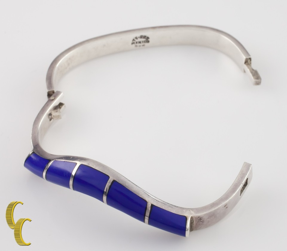 Taxco Mexico Sterling Silver Lapis Lazuli Inlay Bracelet Gorgeous