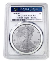 2021-W S$1 Silver American Eagle Proof Graded by PCGS as PR70DCAM Early Issue T2