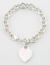 Tiffany Co. Sterling Silver Blank Heart Tag Charm Bracelet 7.75"