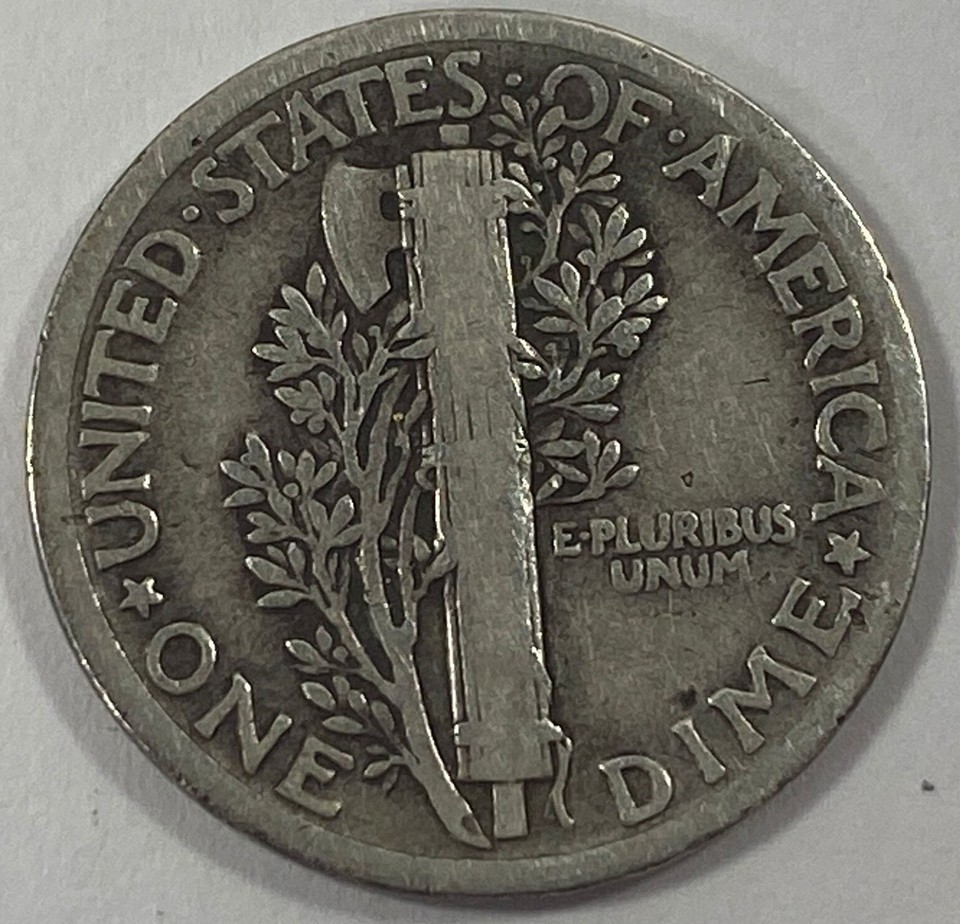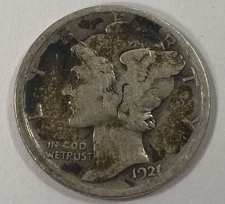 1921 10C Mercury Dime in Very Good Condition, Complete Wheels & 4-Digit Rende...