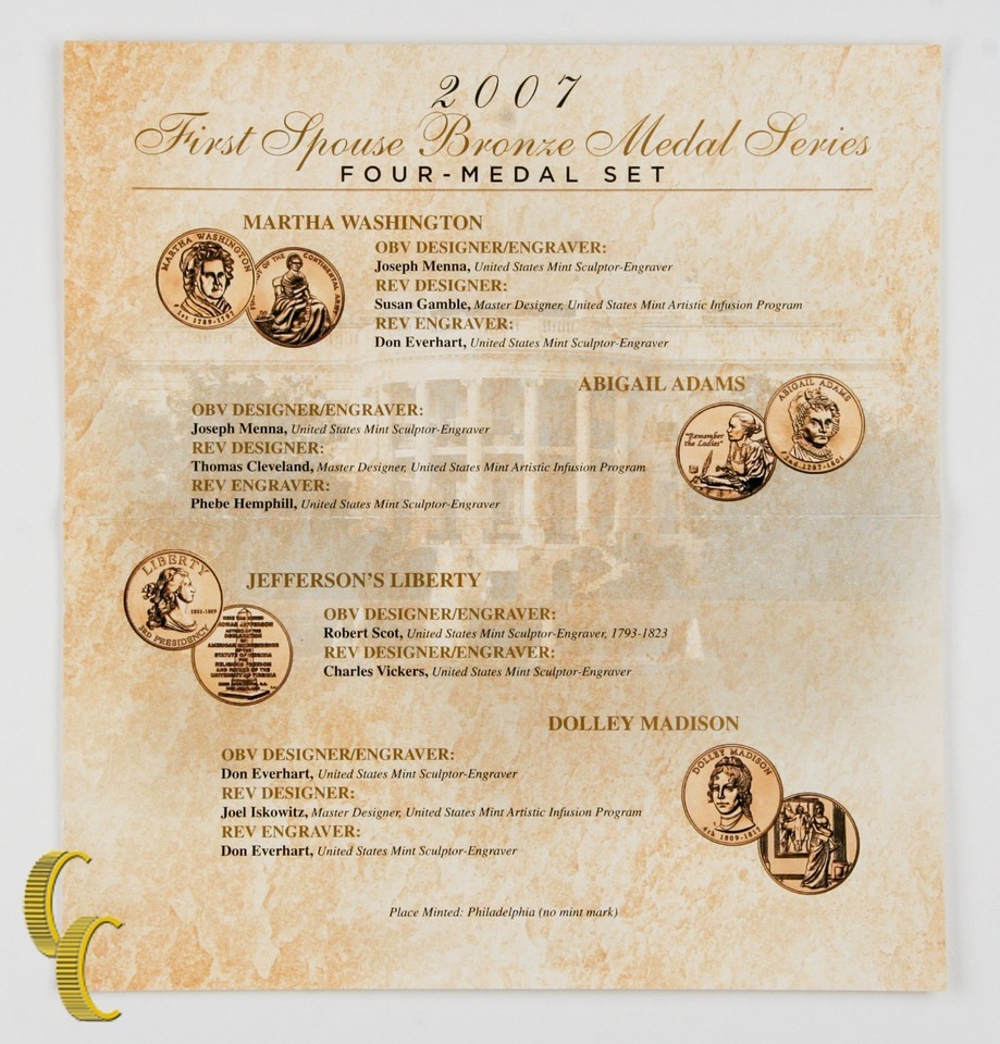 2007 First Spouse Bronze Medal Series 4 Medal Kit US Mint- show original titl...