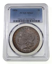 1896 Silver Morgan Dollar Classified By PCGS As MS63! Cool Toning Wheel- show...
