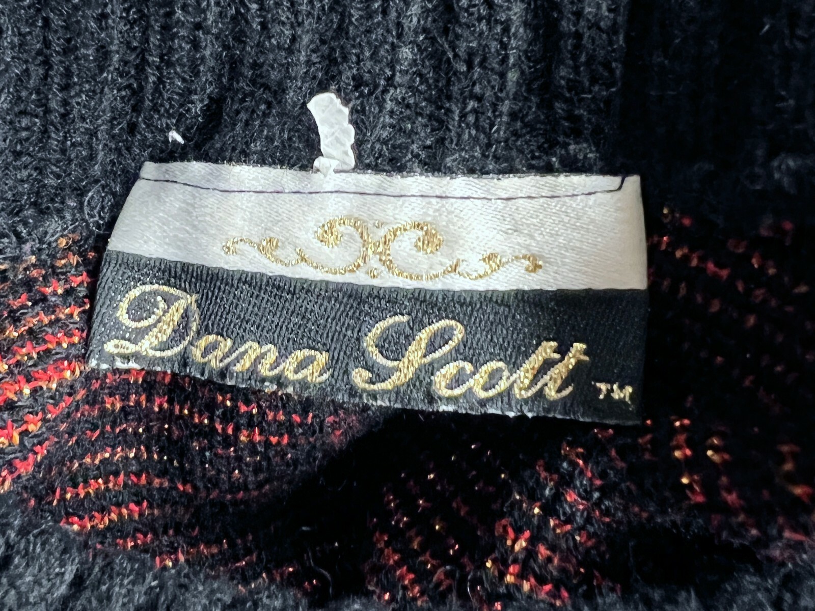 VTG 80s Dana Scott Harlequin Rose Sweater Dress Black Copper Red Statement L
