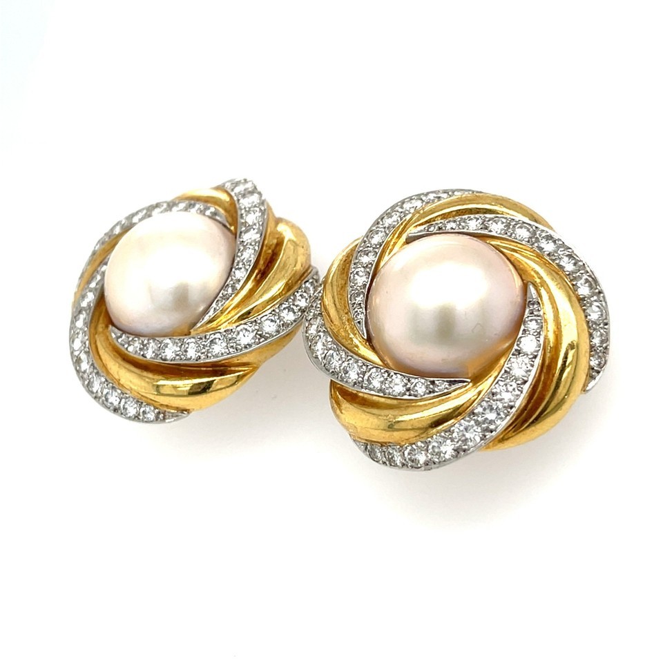 Gorgeous Mabe Pearl and Diamond Ear Clips