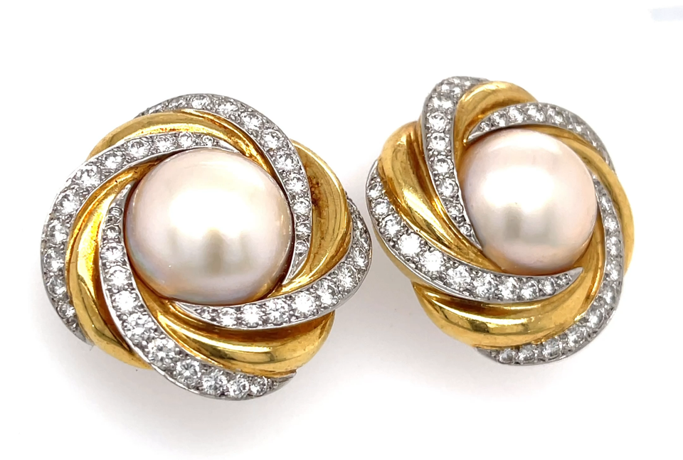 Gorgeous Mabe Pearl and Diamond Ear Clips