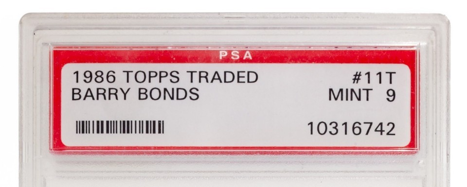 1986 Topps Barry Bonds Rookie Card #11T Graded by PSA as Mint 9
