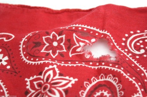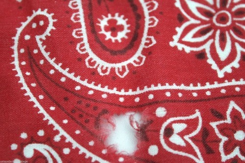 Great vintage Bandana, with selvage edge, with the elephant trunk up symbol.. 21? Square and in good condition with two holes as shown. Somewhat faded.