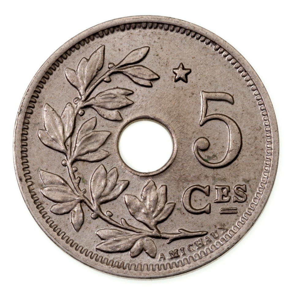 1932 Belgium 5 Centimes Coin in About Uncirculated Condition, KM# 66