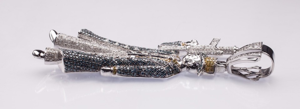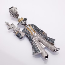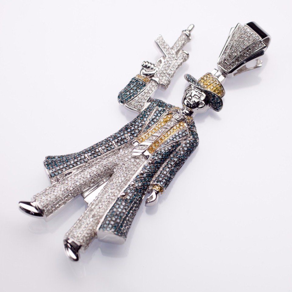 10k White Gold Color-Enhanced Diamond Encrusted Gangster Pendant Bling