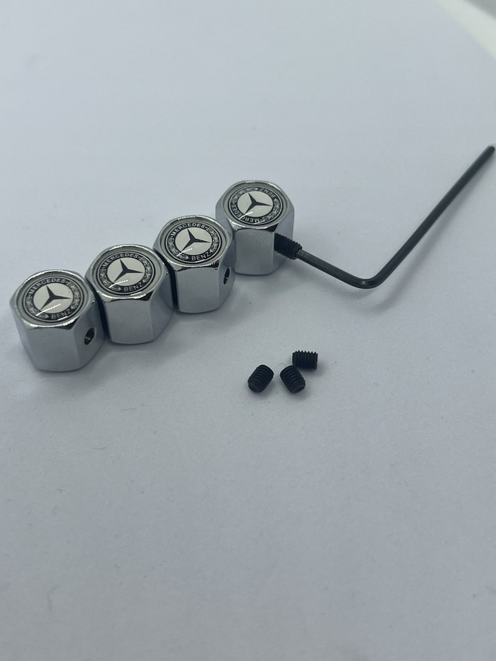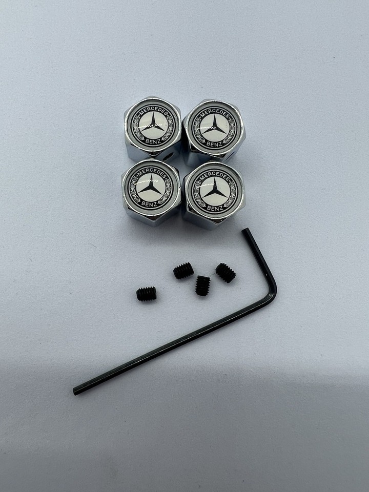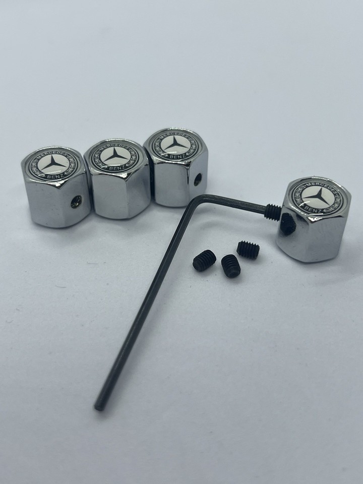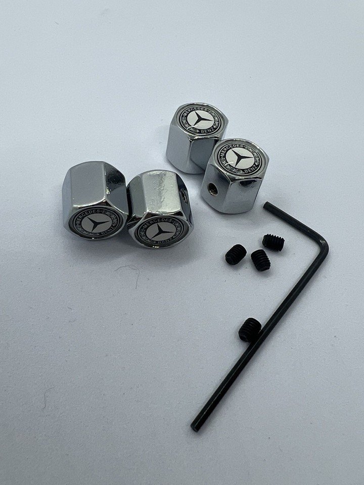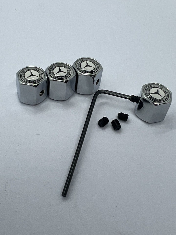 4x Chrome Antitheft Tire Air Valve Stem Cap Fits Most Mercedes Cars Wagons SUVs