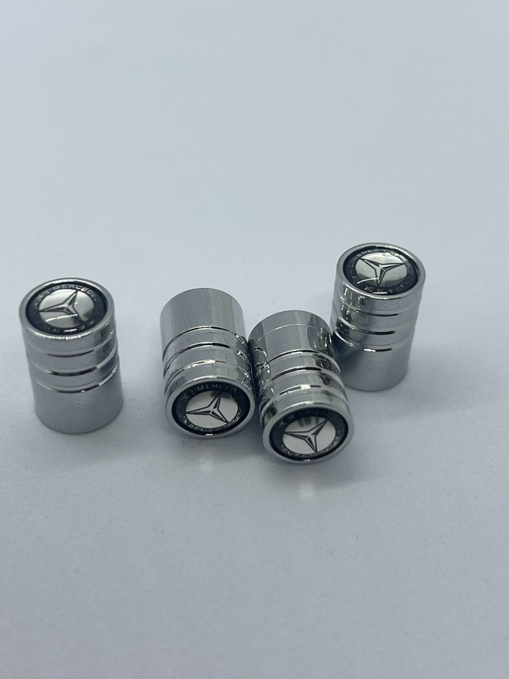 4x Chrome Aluminum Tire Air Valve Stem Cap Fits Most Mercedes Cars Wagons & SUVs