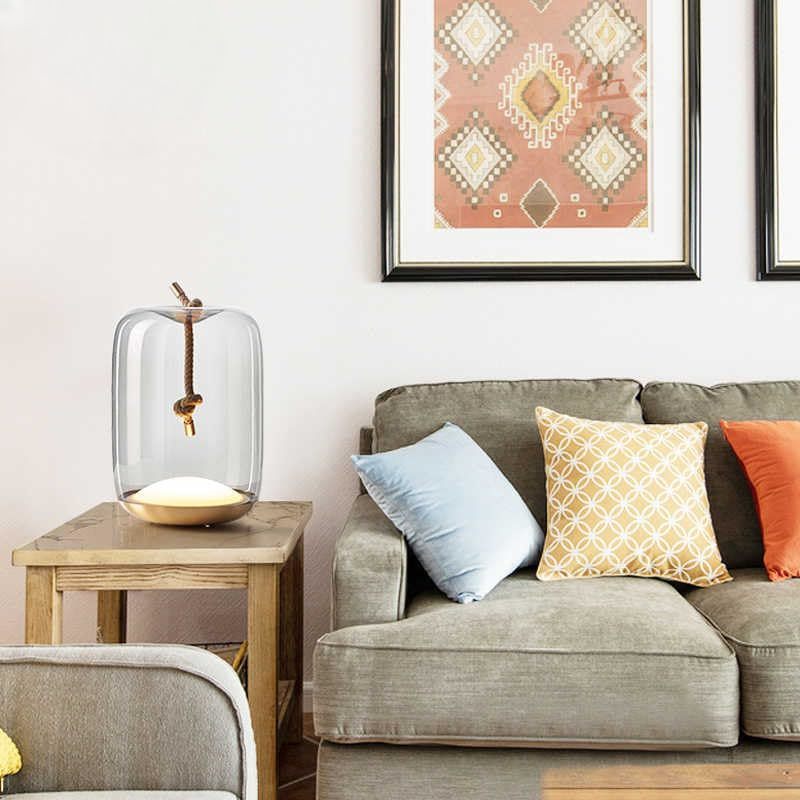 interoknack Knot Table Lamp, Minimal Iron Glass Bedroom Table Light, Smoky Gray,