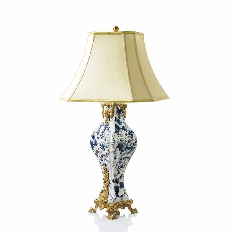 interoknack Blue and White Porcelain Table Lamp with Brass Accents, Floral Ceram