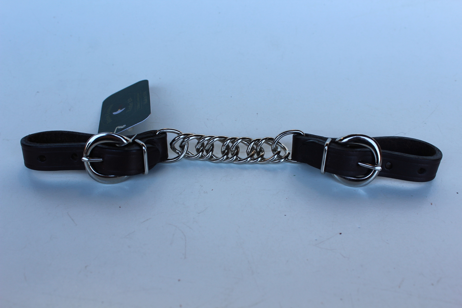 Amish made curb chain from oiled Hermann Oak Leather. Features nickle plated twisted chain and hardware.