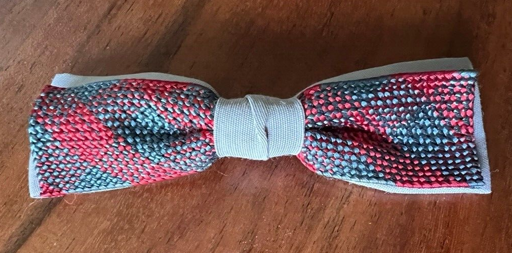 Ormond Mens Bow Tie Red Gray Diamond Rayon Clip On Vintage 1940s USA