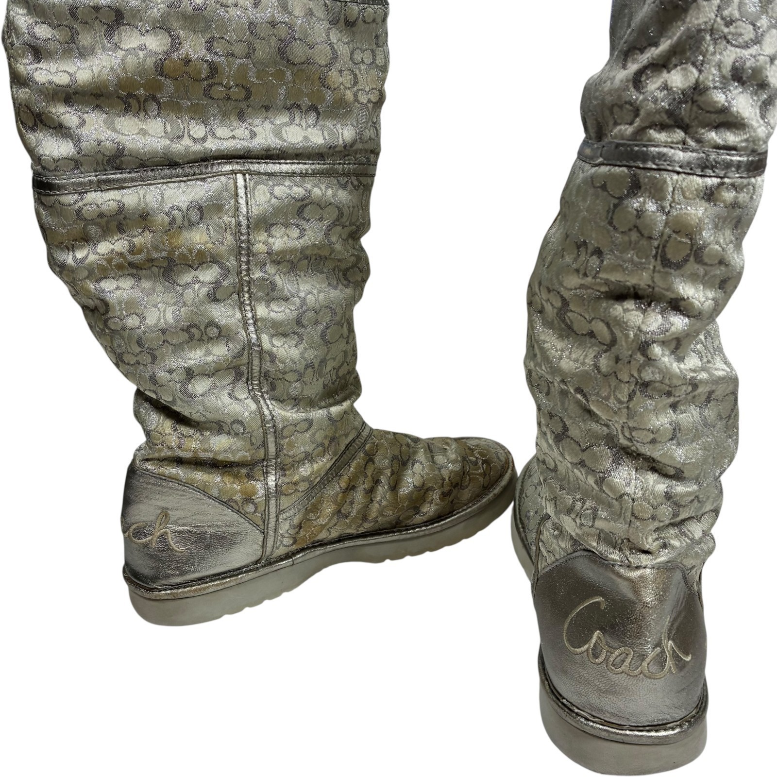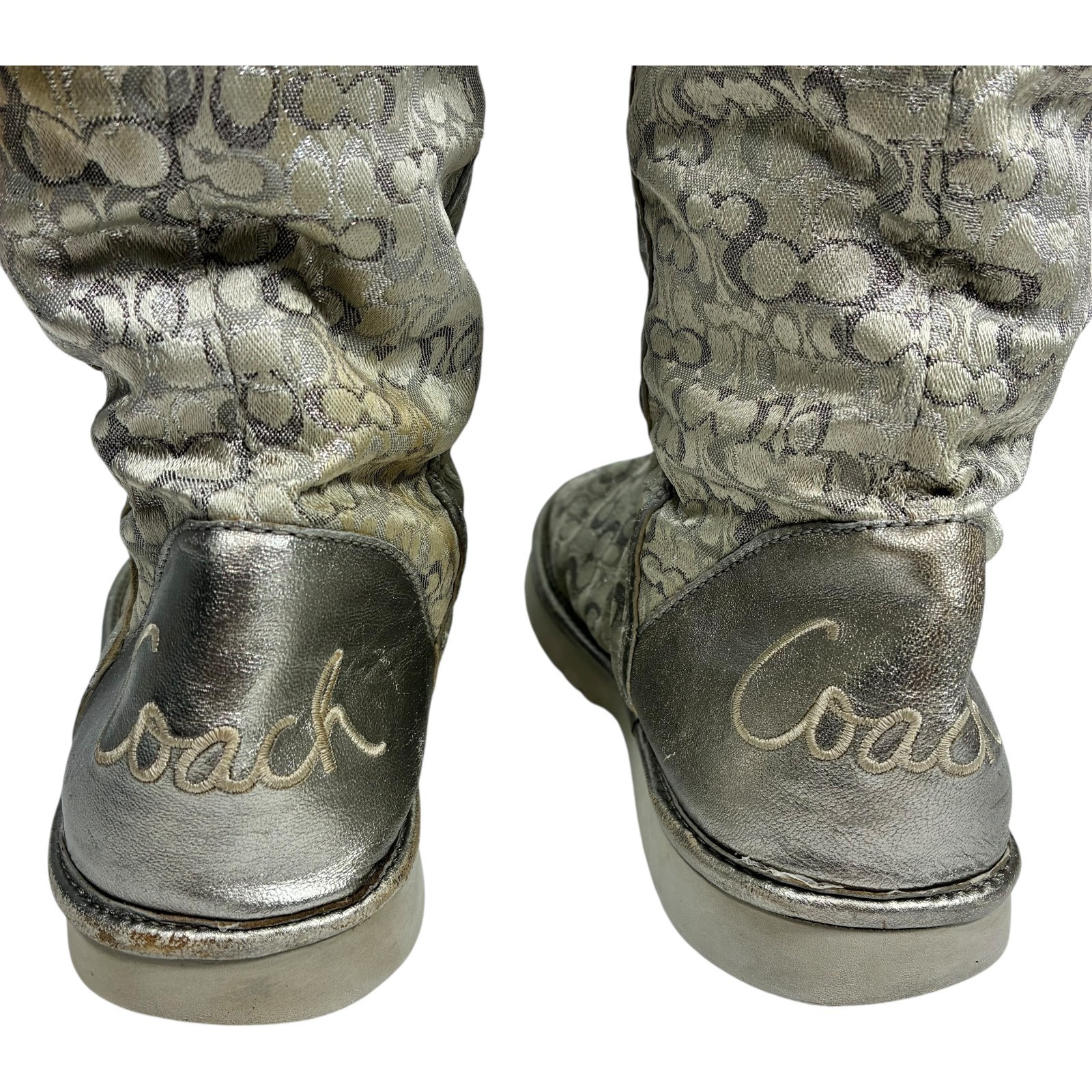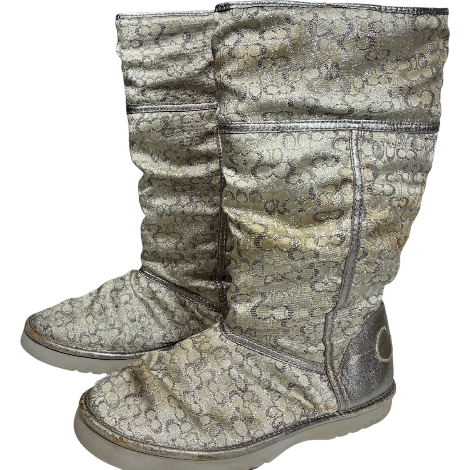 Coach womens 8B Nikole Gold Signature Logo Shearling Lined Winter Boots READ!!!