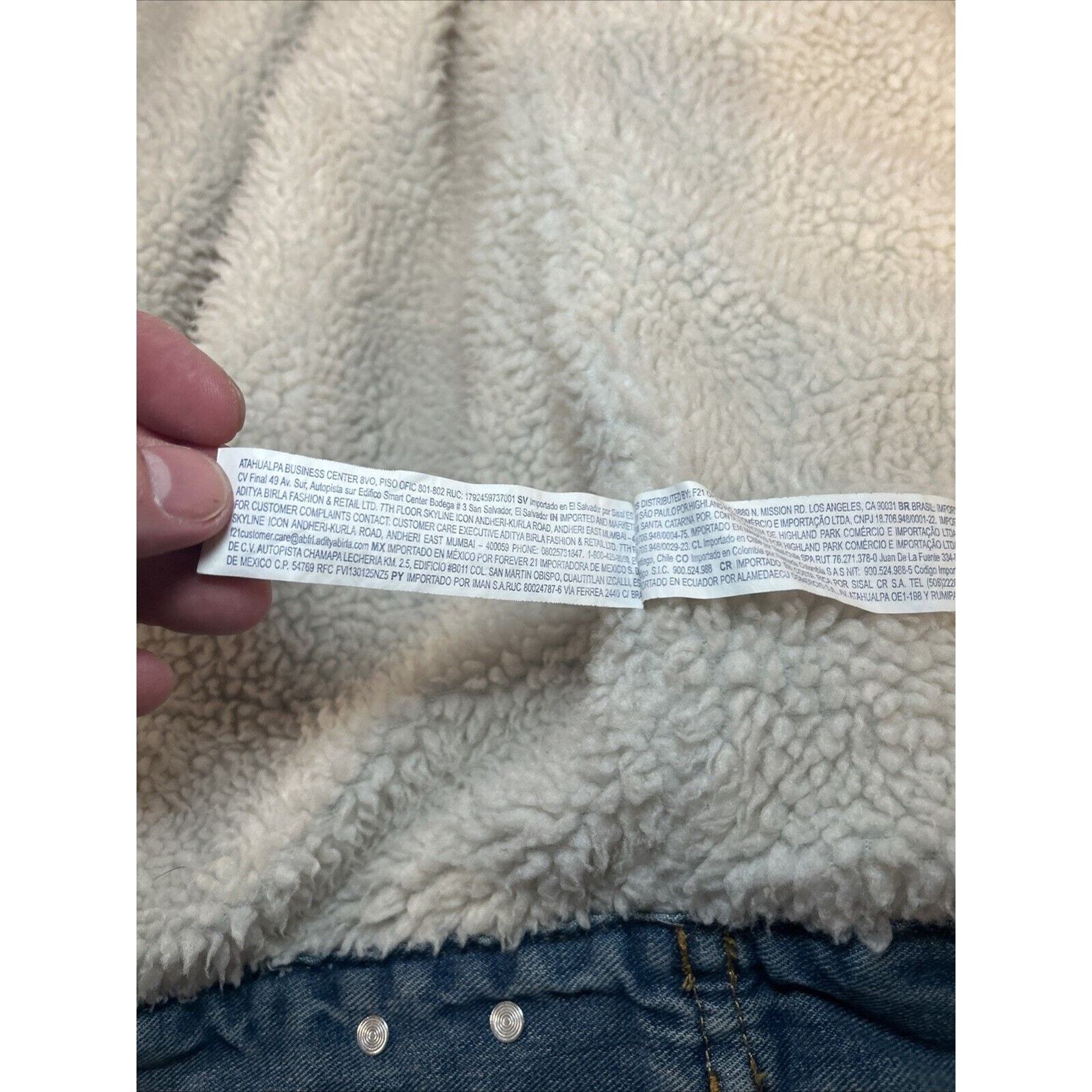 Forever 21 Women’s Sherpa Lined Denim Trucker Jacket Size Small Blue Faux Fur