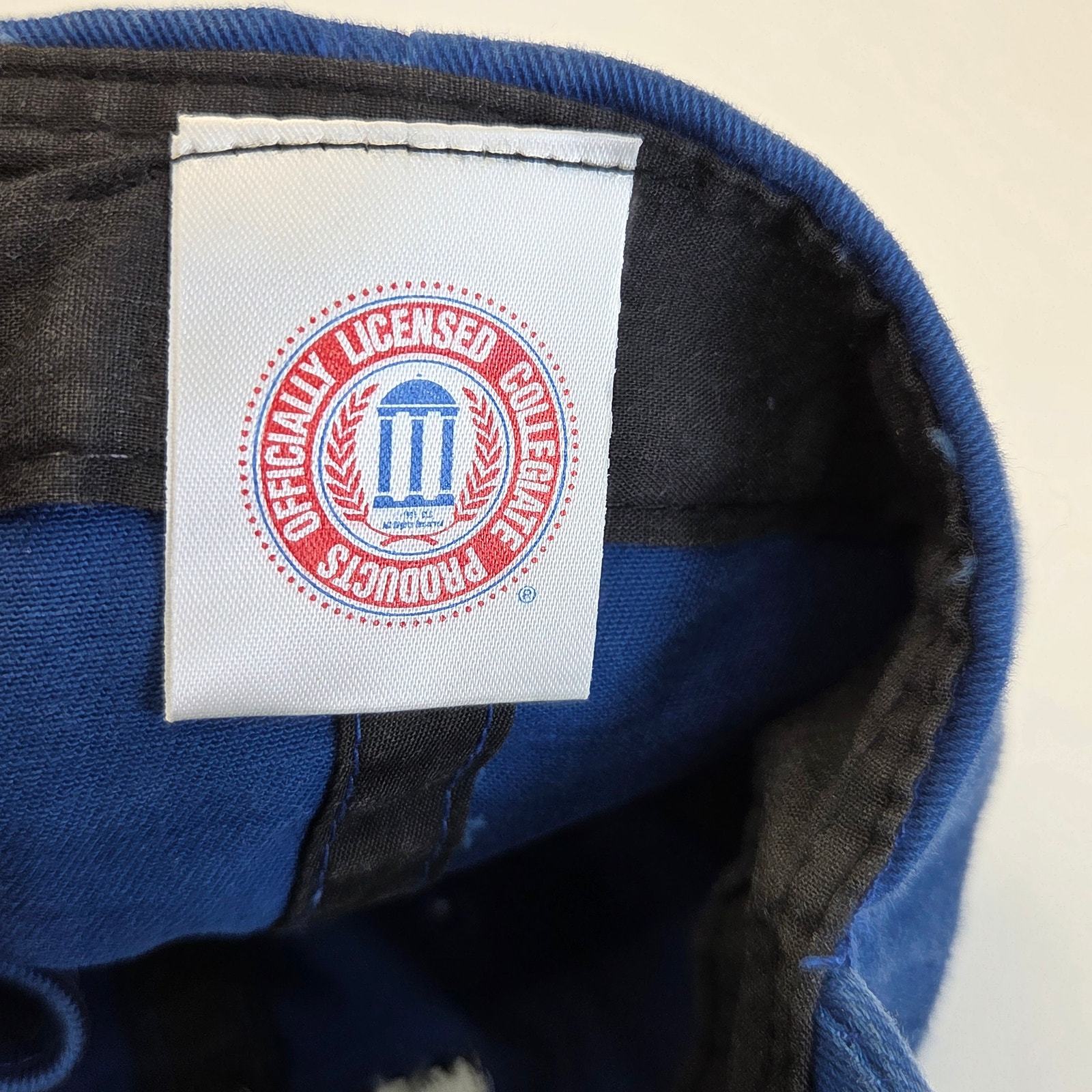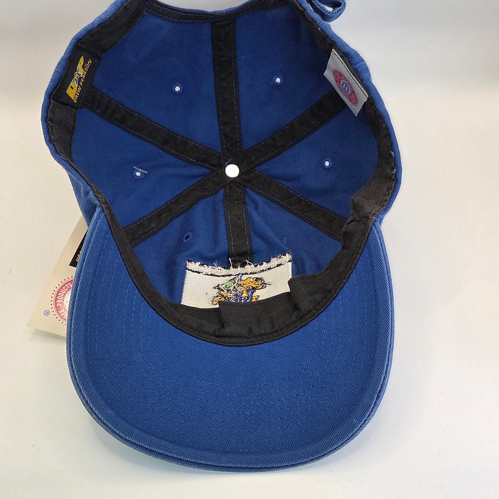 Features the classic embroidered Wildcats logo patch on front, blue cotton construction, and adjustable strapback with brass buckle closure. Retains its original hang tag from ?Officially Licensed Collegiate Products.?