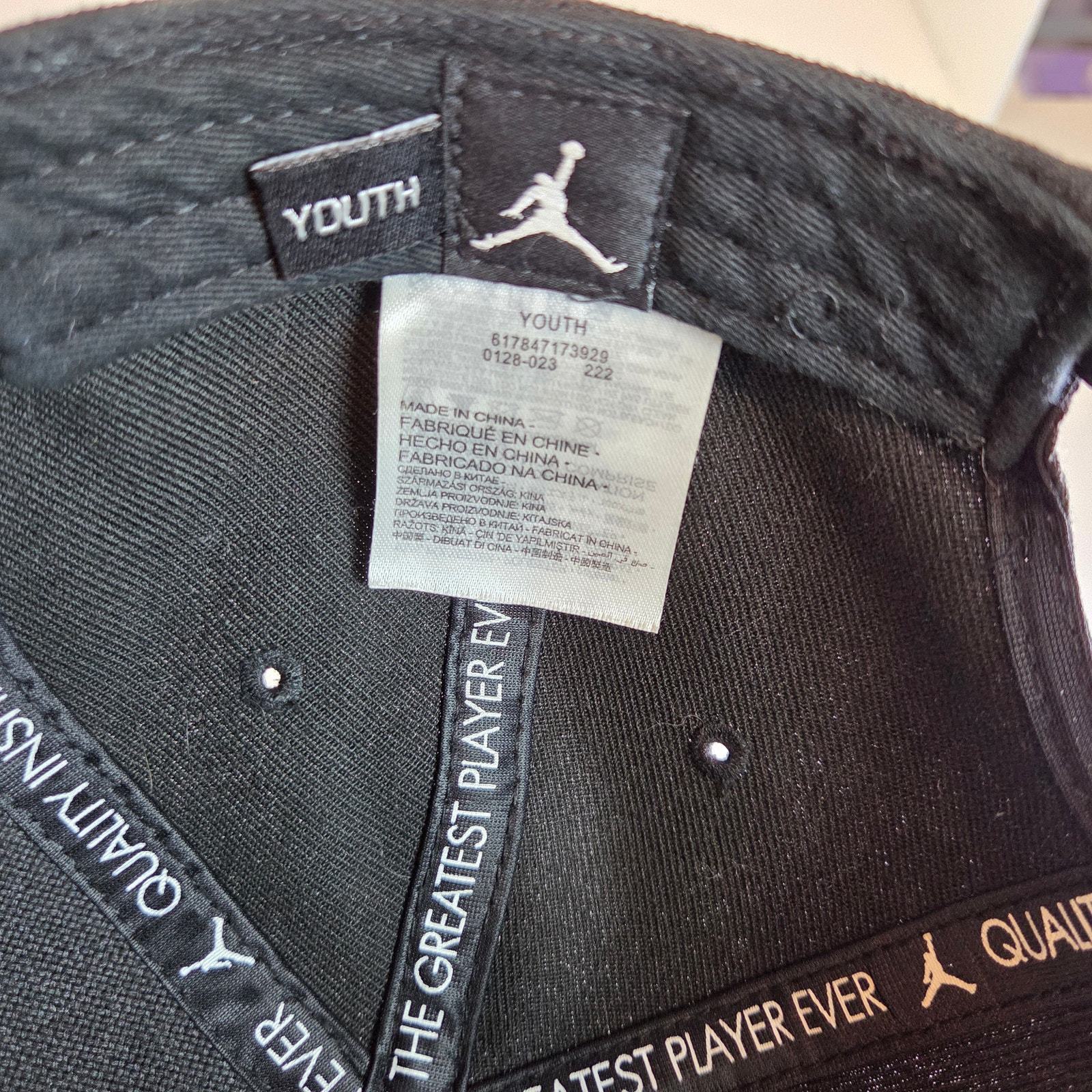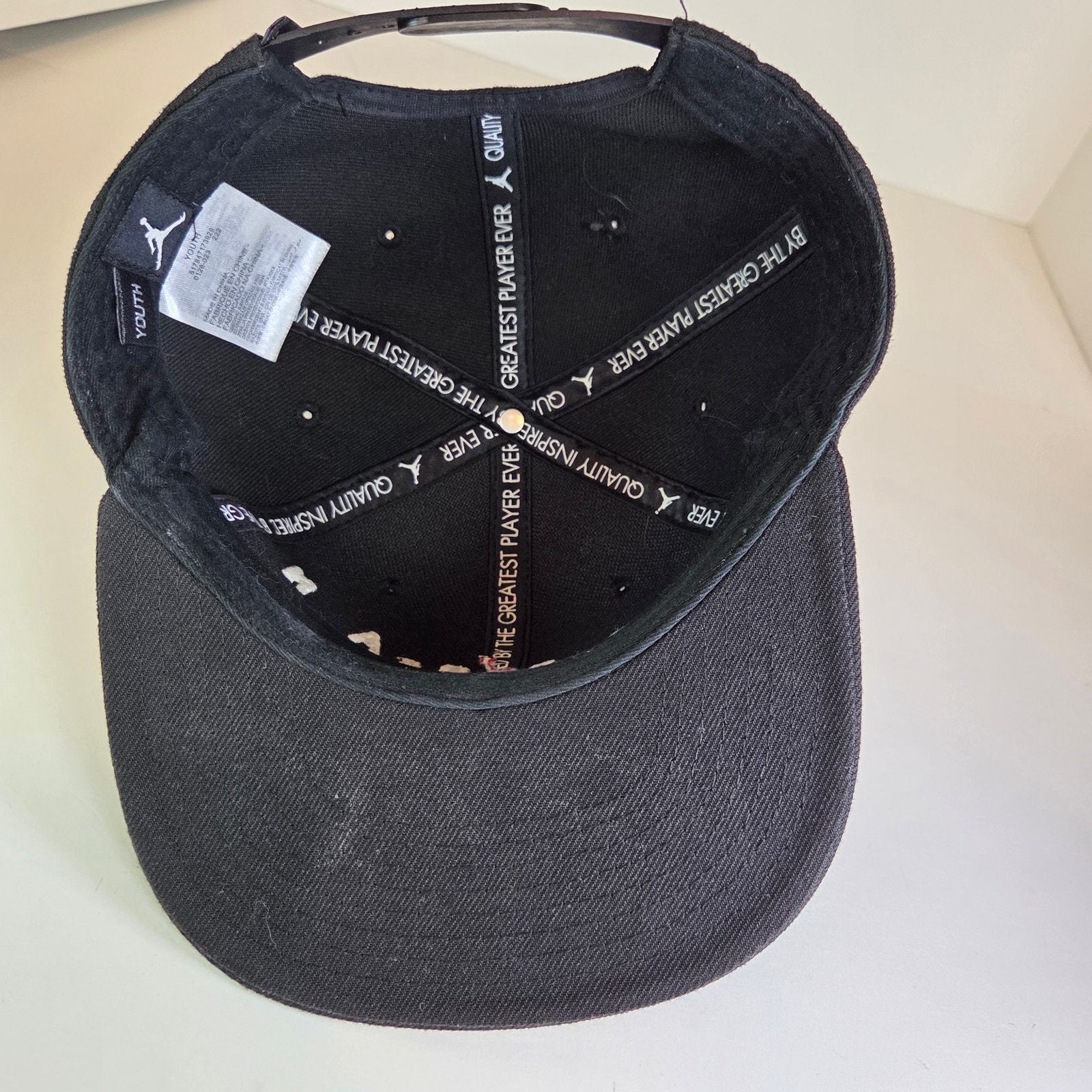 Let youth fans take flight with this classic Air Jordan snapback cap! Crafted from 100% polyester, this hat features bold, embroidered ?JORDAN? lettering across the front with the iconic red Jumpman silhouette integrated in the middle. The adjustable snapback closure makes it one-size-fits-most (youth), and the interior taping reads QUALITY INSPIRED BY THE GREATEST PLAYER EVER, making it both stylish and inspiring. The cap is in very good condition, showing no visible flaws or damage?ready to wear!