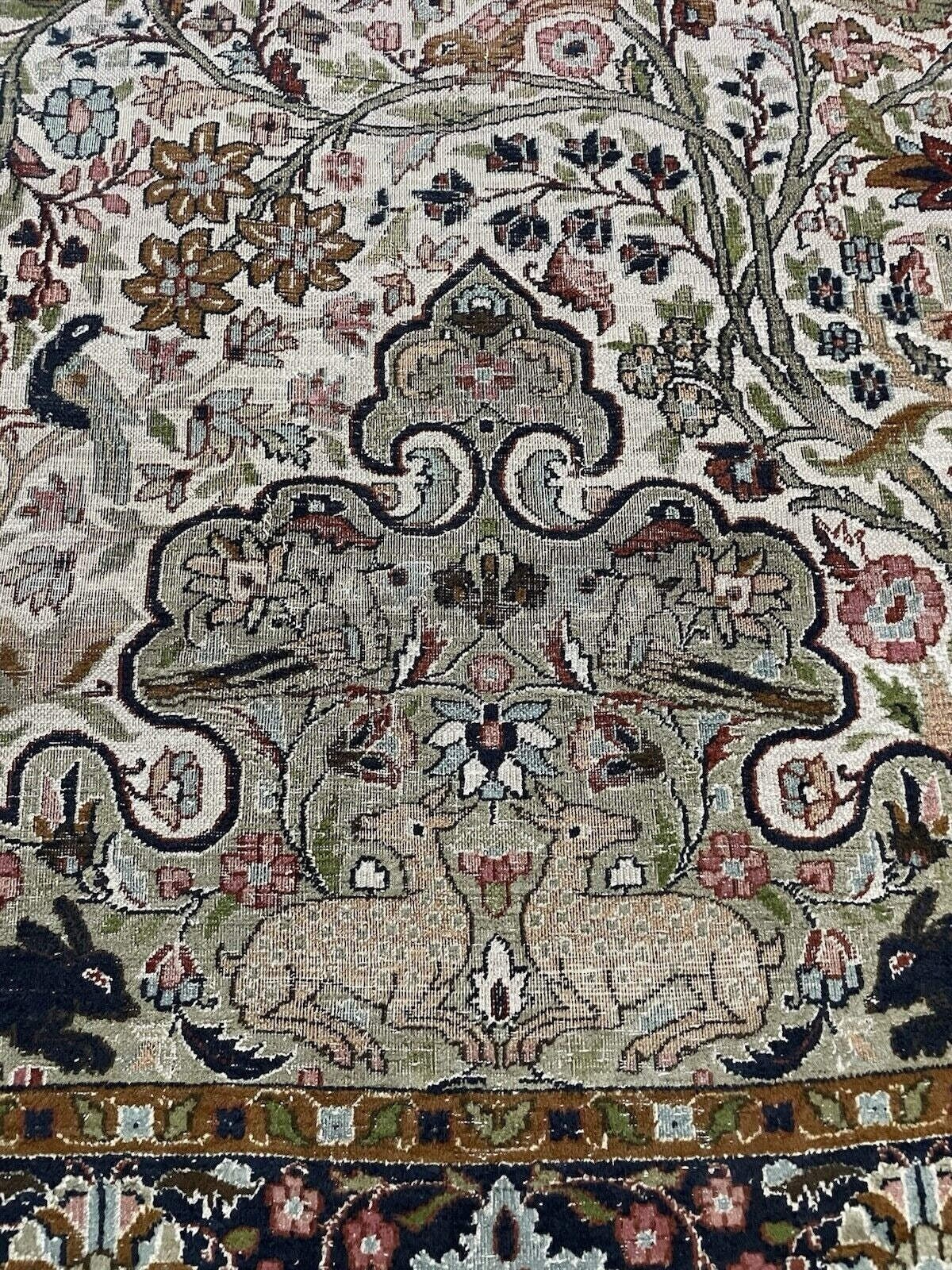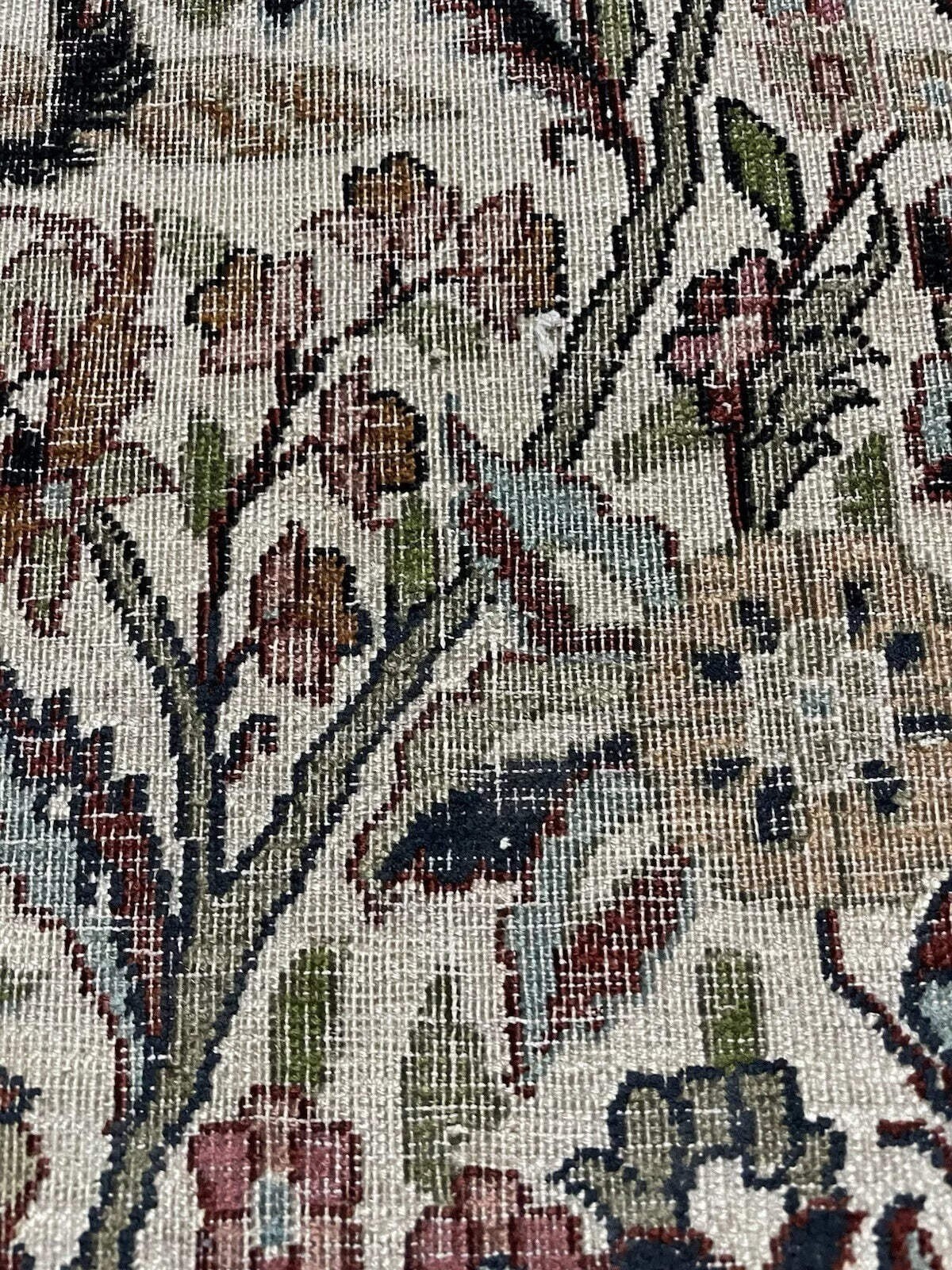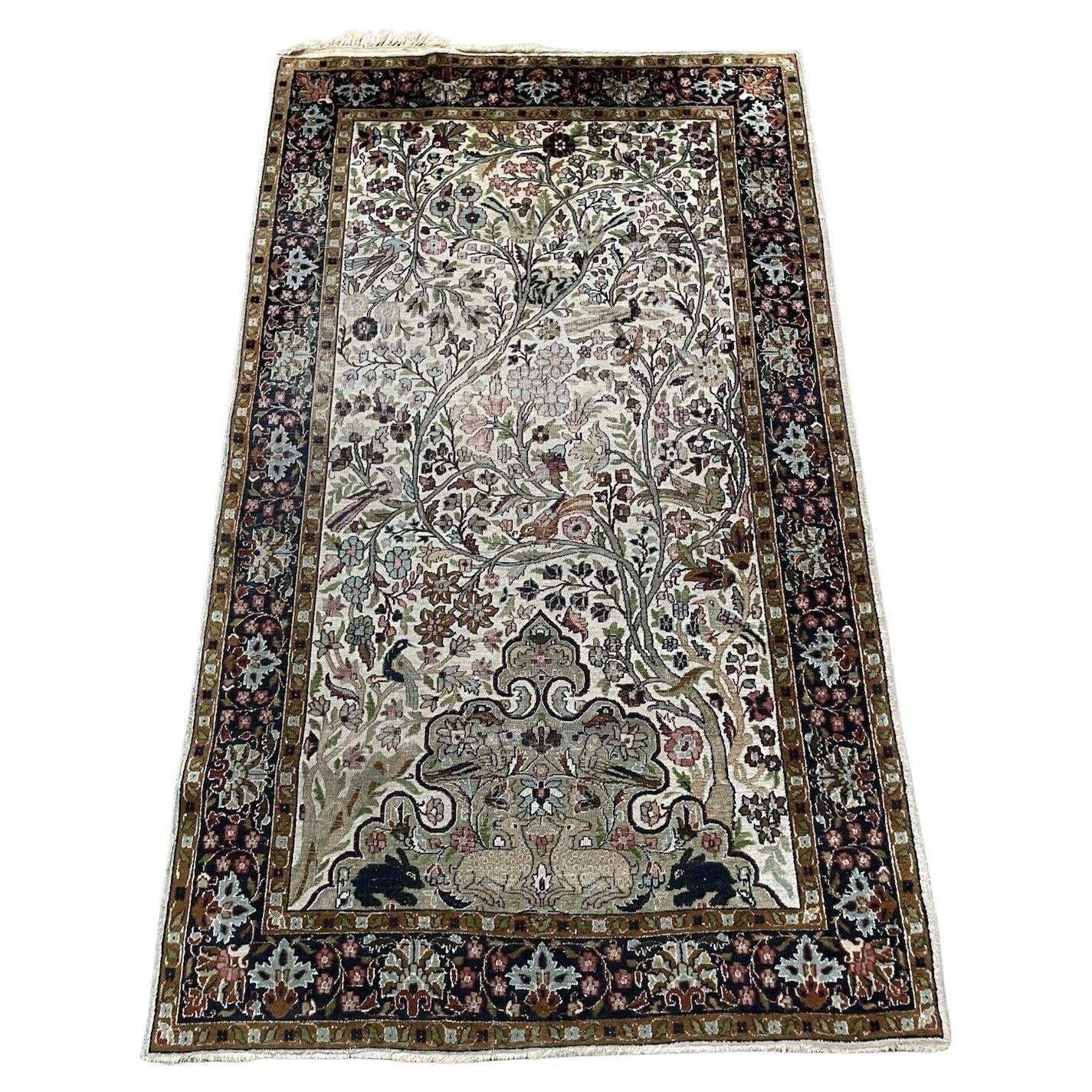 This exquisite handmade antique Indian Agra rug from the 1920s is a narrative masterpiece woven in wool. It features the revered "Tree of Life" design, a symbol of immortality and connection. Furthermore, its beautifully distressed condition and soft, muted palette speak volumes of its century of history. Consequently, this piece offers not just decorative appeal but a tangible link to a rich artistic tradition. A Story Woven in Wool The rug's central "Tree of Life" motif gracefully branches across a gentle, open field. This iconic symbol is richly detailed and surrounded by a charming array of stylized animals. You will discover birds, deer, and other creatures nestled within the design. Moreover, each element tells a story of nature and spirituality. The overall composition is both captivating and serene, inviting prolonged contemplation. A Patina of Age and Beauty The passage of time has bestowed upon this rug a soft, distressed aesthetic. The original colors have mellowed into a harmonious blend of muted tones, including delicate ivories, soft beiges, and faded terracotta. This natural patina enhances the rug's authentic character and vintage charm. The wool has developed a lustrous sheen that only age can provide. This makes each viewing a unique visual experience. Versatile Elegance for Your Home This Agra rug carries a soulful presence that complements a variety of interior styles. It serves as a stunning focal point in a living room or study. Alternatively, it can add warmth and history beside a bed or in an entryway. Its manageable size and timeless story make it exceptionally versatile. Ultimately, this is a rare opportunity to own a piece of woven history that will infuse any space with depth and narrative. Product Details Age: Circa 1920s Origin: Agra, India Material: 100% Wool Condition: Distressed (showing signs of age and wear) Dimensions: In Feet: 2' 11" x 4' 11" In Centimeters: 89 cm x 150 cm In Inches: 35" x 59"
