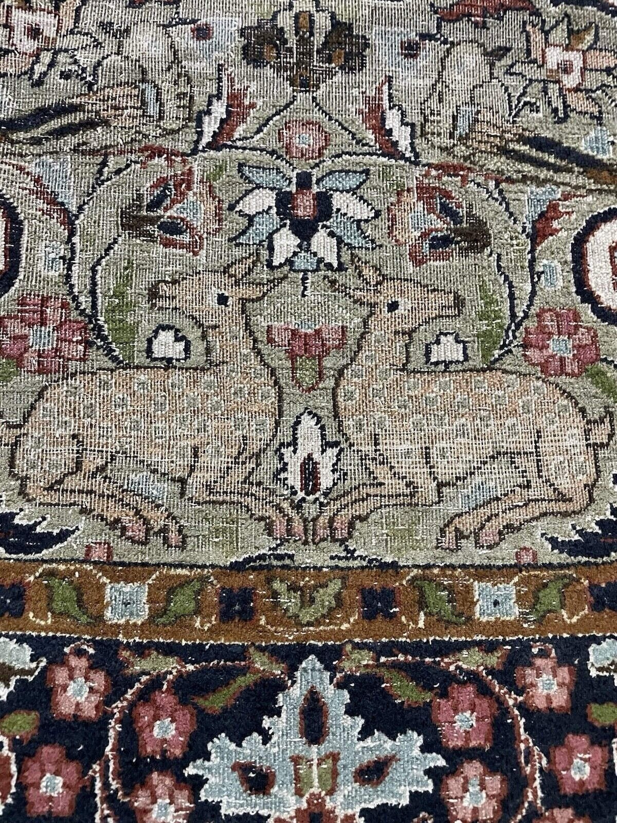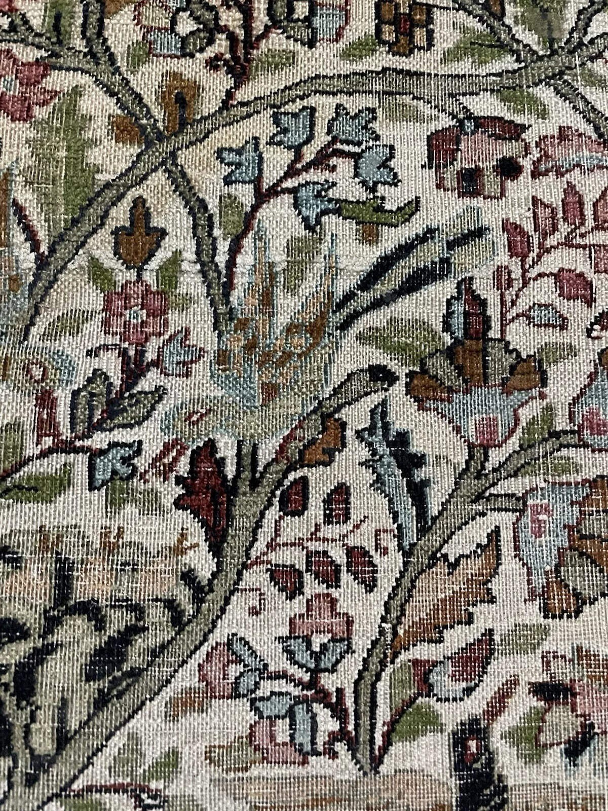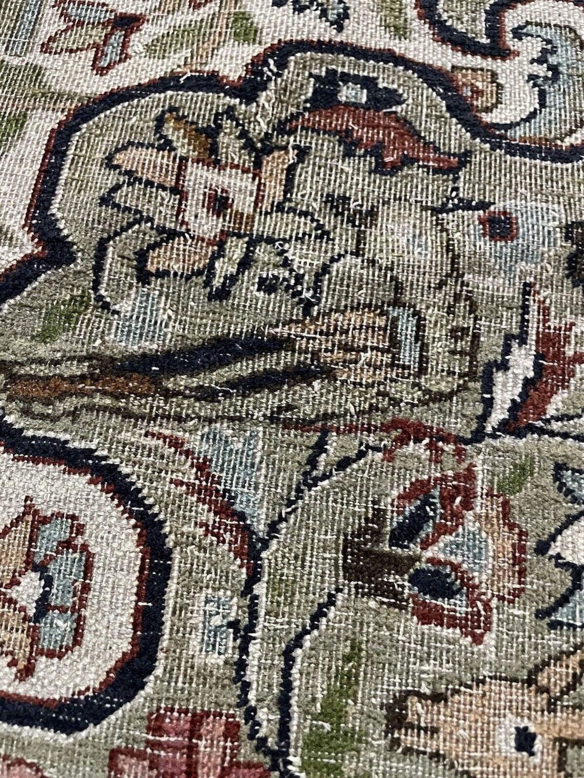 This exquisite handmade antique Indian Agra rug from the 1920s is a narrative masterpiece woven in wool. It features the revered "Tree of Life" design, a symbol of immortality and connection. Furthermore, its beautifully distressed condition and soft, muted palette speak volumes of its century of history. Consequently, this piece offers not just decorative appeal but a tangible link to a rich artistic tradition. A Story Woven in Wool The rug's central "Tree of Life" motif gracefully branches across a gentle, open field. This iconic symbol is richly detailed and surrounded by a charming array of stylized animals. You will discover birds, deer, and other creatures nestled within the design. Moreover, each element tells a story of nature and spirituality. The overall composition is both captivating and serene, inviting prolonged contemplation. A Patina of Age and Beauty The passage of time has bestowed upon this rug a soft, distressed aesthetic. The original colors have mellowed into a harmonious blend of muted tones, including delicate ivories, soft beiges, and faded terracotta. This natural patina enhances the rug's authentic character and vintage charm. The wool has developed a lustrous sheen that only age can provide. This makes each viewing a unique visual experience. Versatile Elegance for Your Home This Agra rug carries a soulful presence that complements a variety of interior styles. It serves as a stunning focal point in a living room or study. Alternatively, it can add warmth and history beside a bed or in an entryway. Its manageable size and timeless story make it exceptionally versatile. Ultimately, this is a rare opportunity to own a piece of woven history that will infuse any space with depth and narrative. Product Details Age: Circa 1920s Origin: Agra, India Material: 100% Wool Condition: Distressed (showing signs of age and wear) Dimensions: In Feet: 2' 11" x 4' 11" In Centimeters: 89 cm x 150 cm In Inches: 35" x 59"
