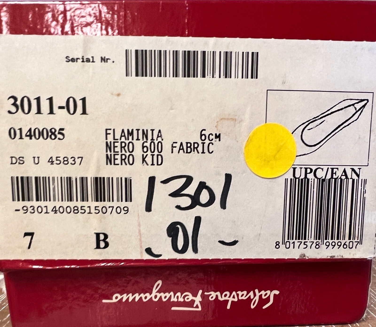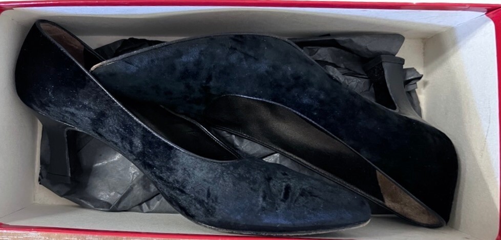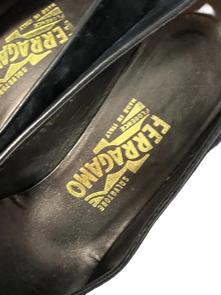 Salvatore Ferragamo Vintage Leather Velvet Black 7B 38 80s Excellent W/Box