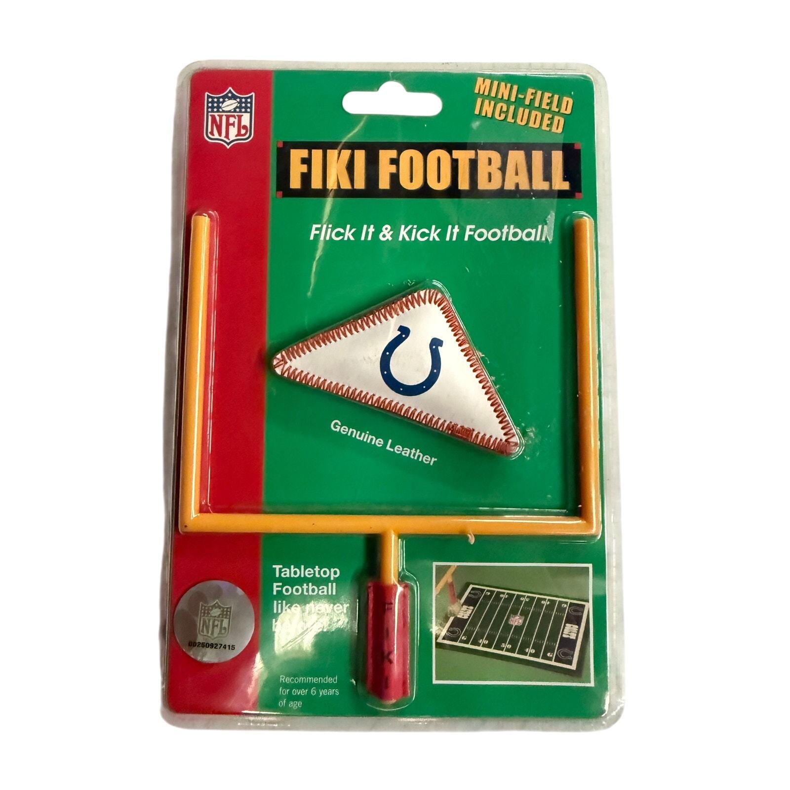 This makes a fantastic gift or a great addition to any Colts memorabilia collection. Don't miss out on the action ? grab this FIKI Football game today and let the fun begin!Tabletop touchdowns start here! This Colts edition of FIKI Football is perfect for fans, collectors, or nostalgic 90s desk game lovers. Features leather triangle ball and fold-out mini field. Ships out Monday, Friday, and most Wednesdays?have a fun time shopping!