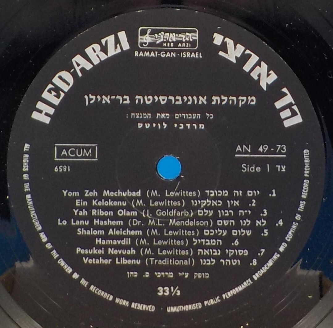 The Bar Ilan University Choir, Mordechai Lewittes |