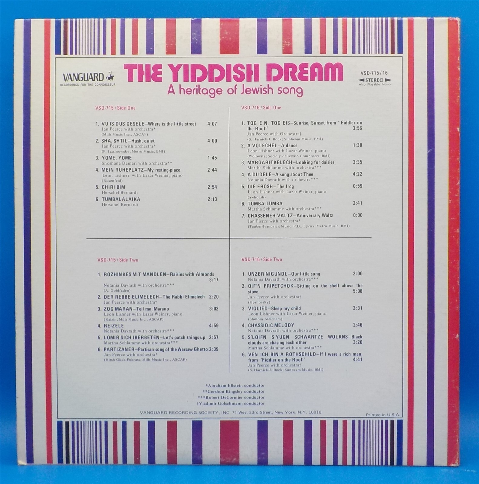 Bernardi, Damari, Davrath, Lishner, Schlamme, Peerce 2xLP "Yiddish Dream" BX4B