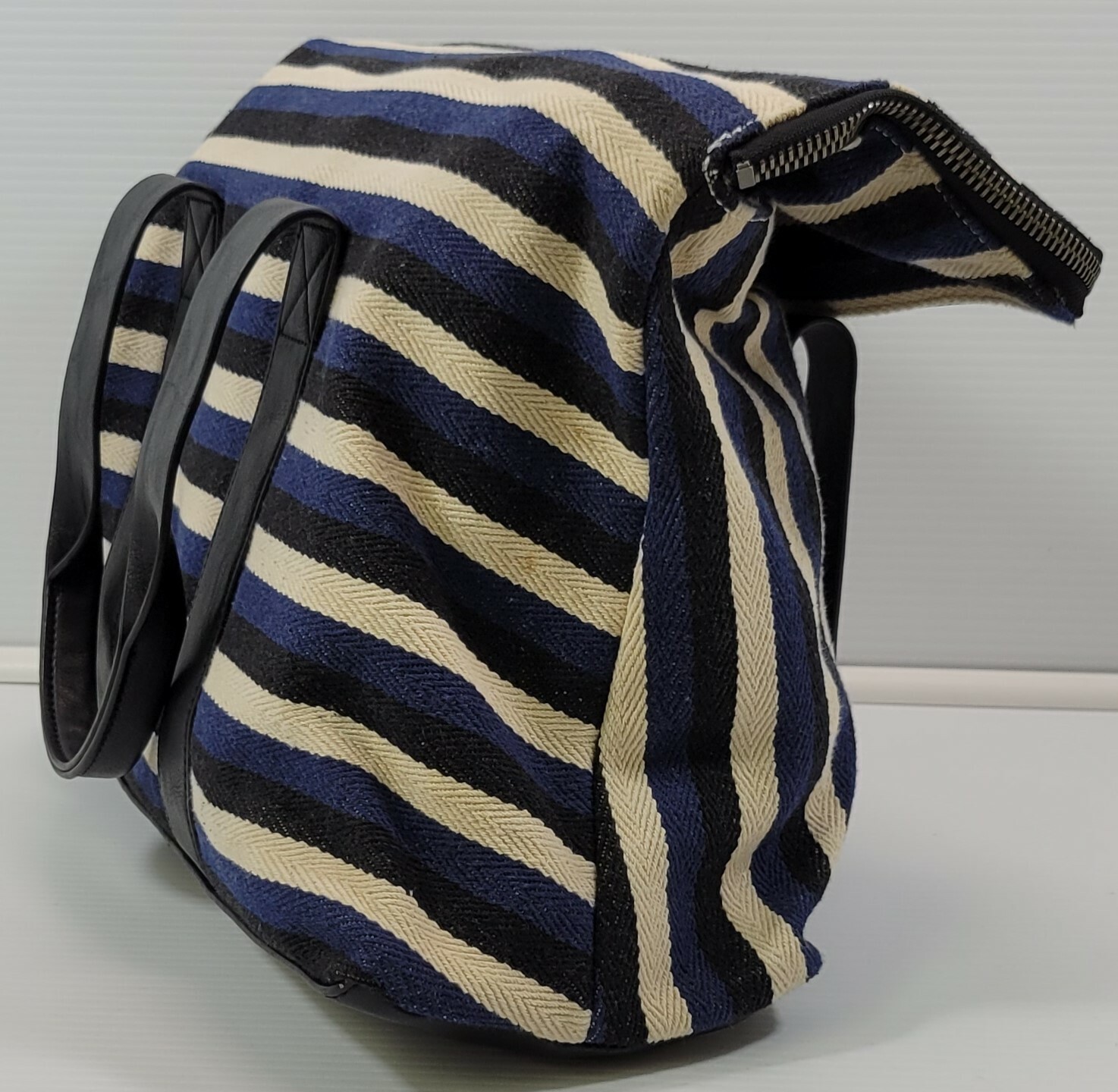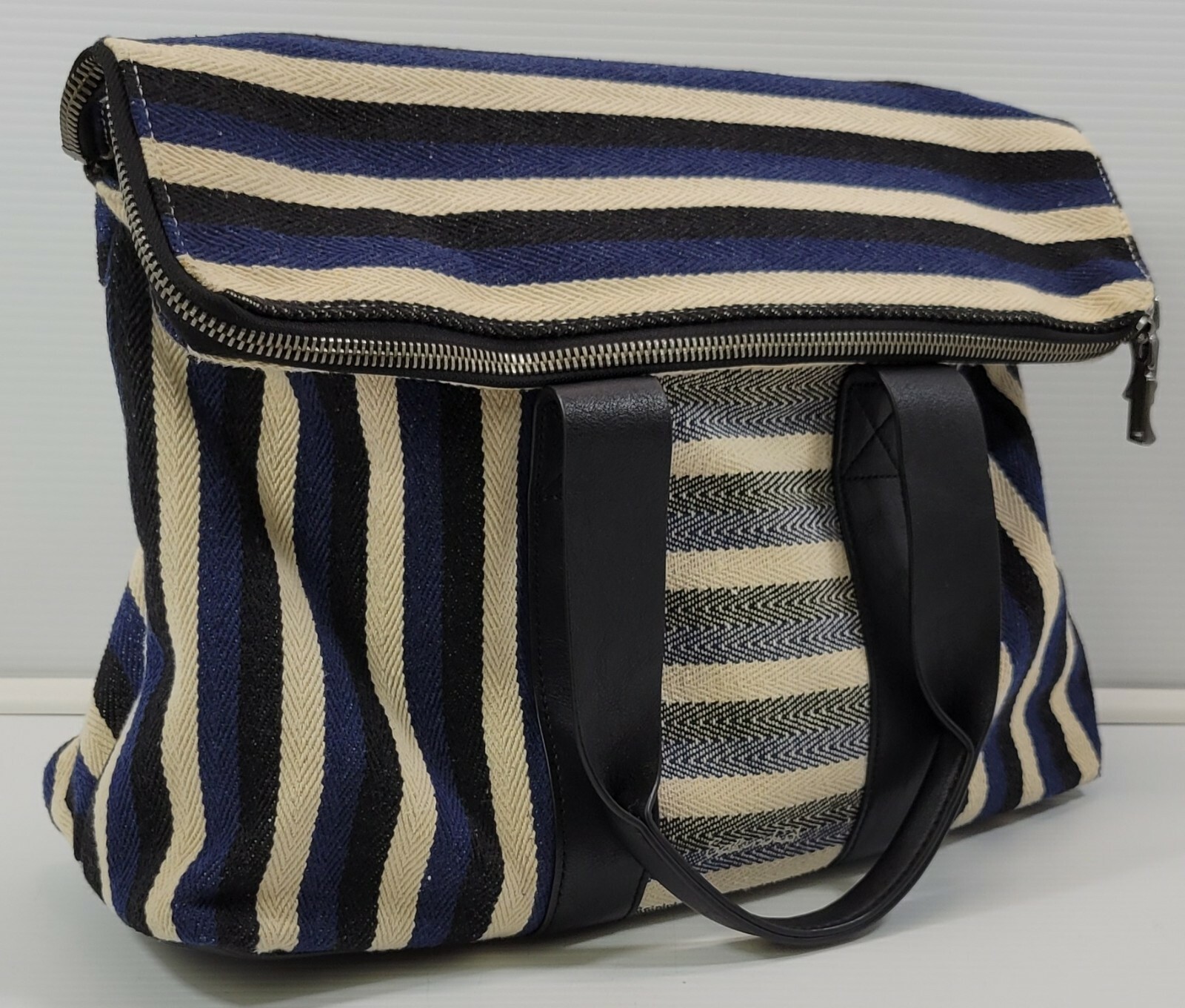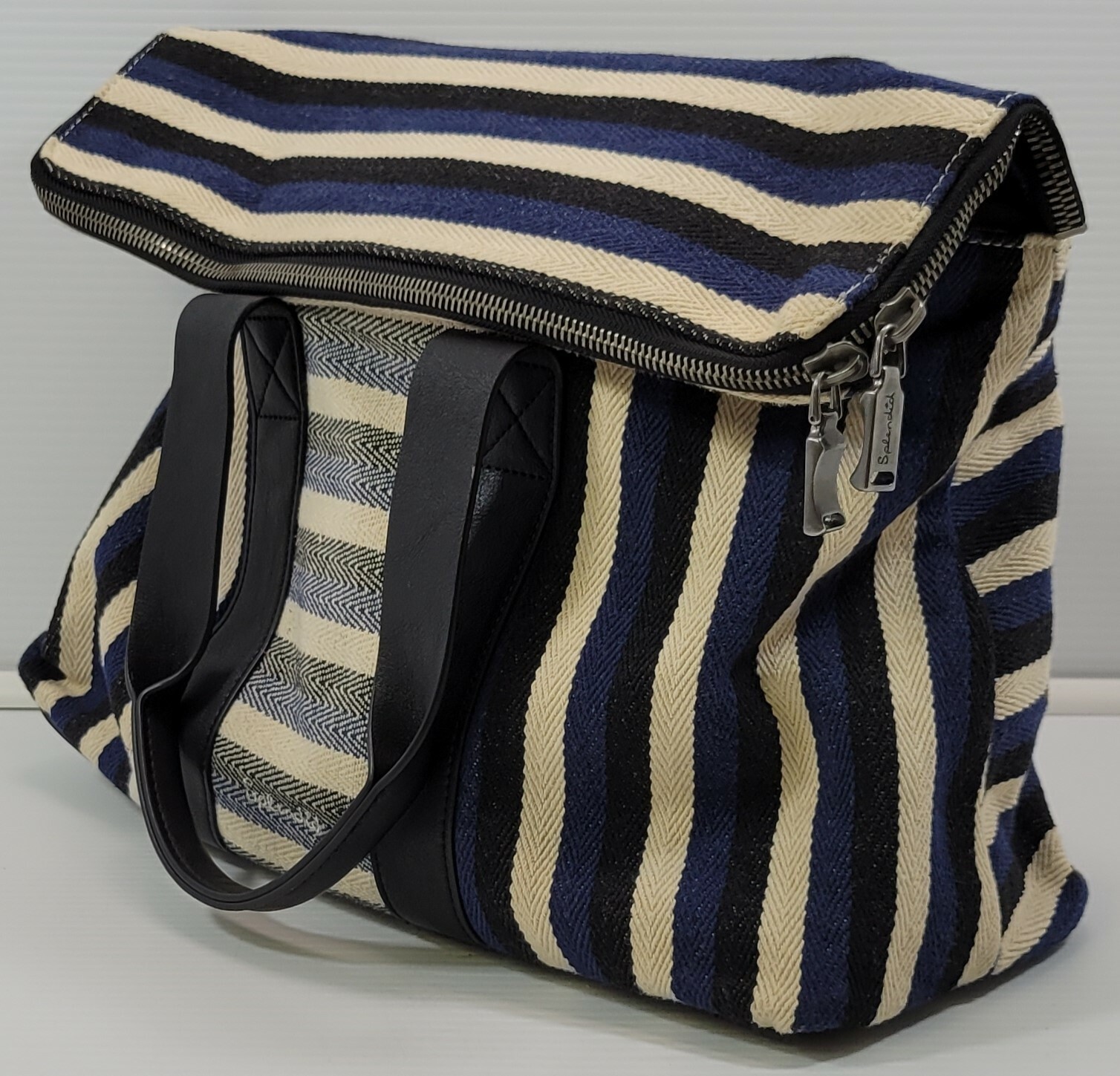 Splendid Women's Hobo Tote Cotton Striped Bag Blue Black White