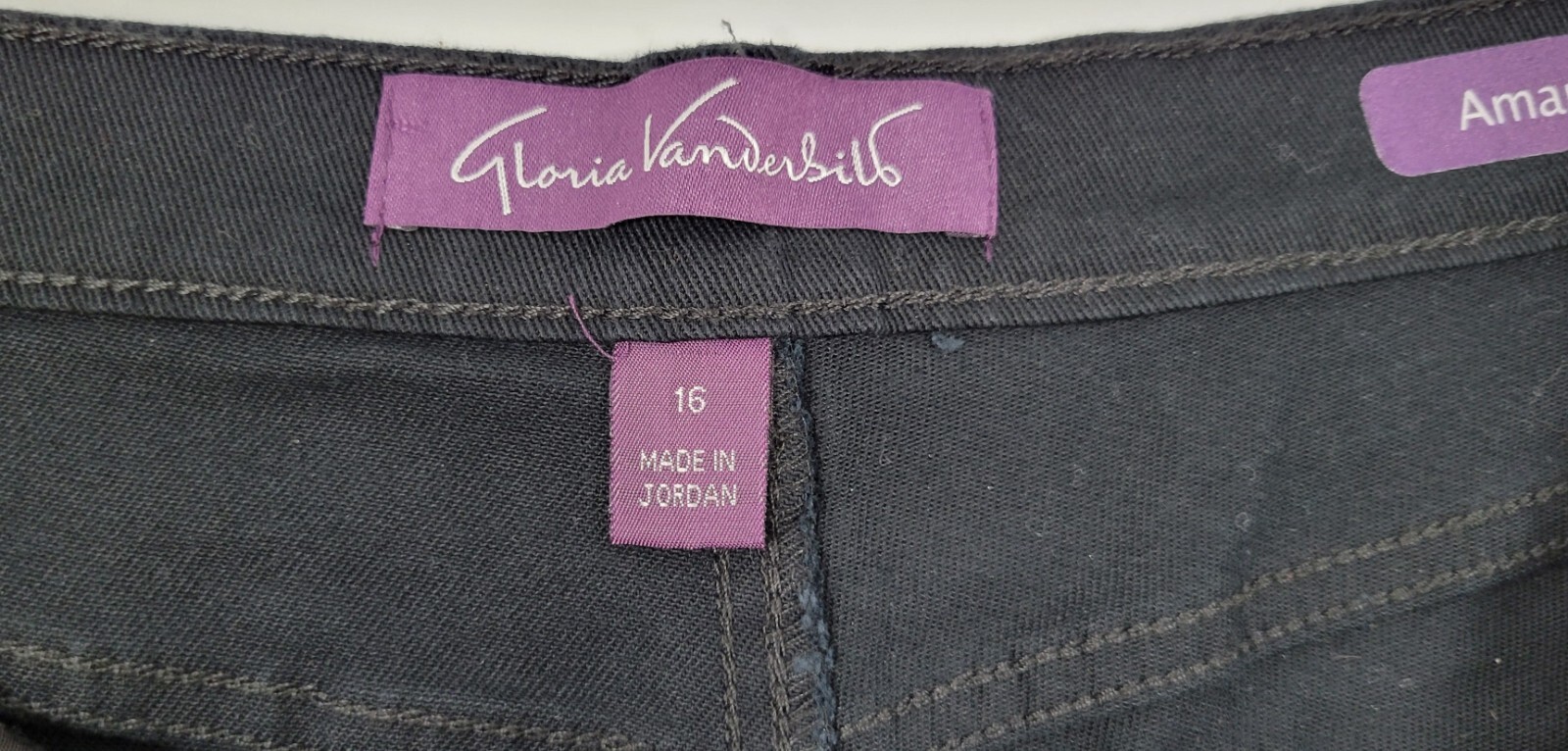 L16) Women's Gloria Vanderbilt Stretch Amanda Black Jeans Pants Size 16 Short added to cart.