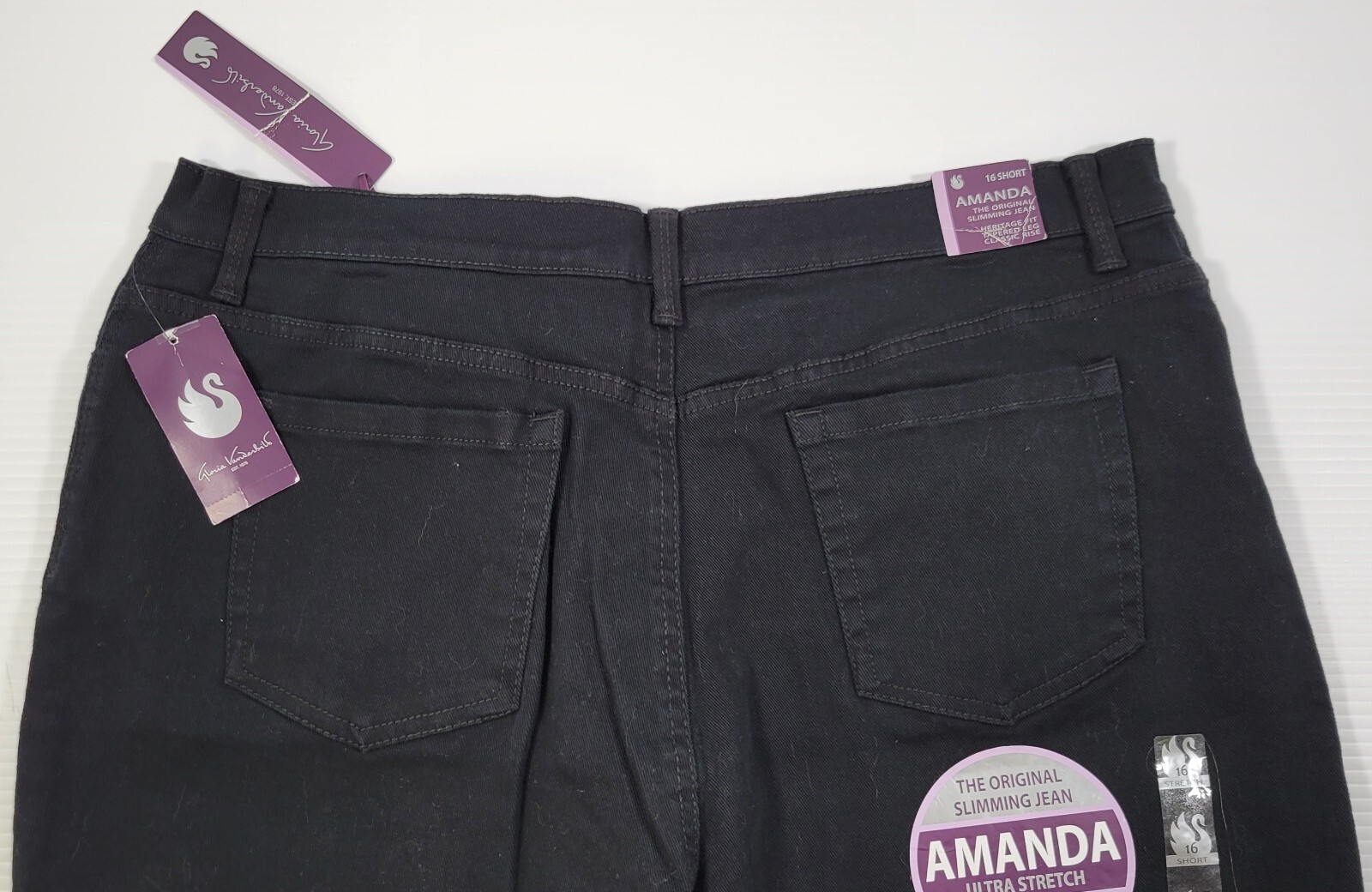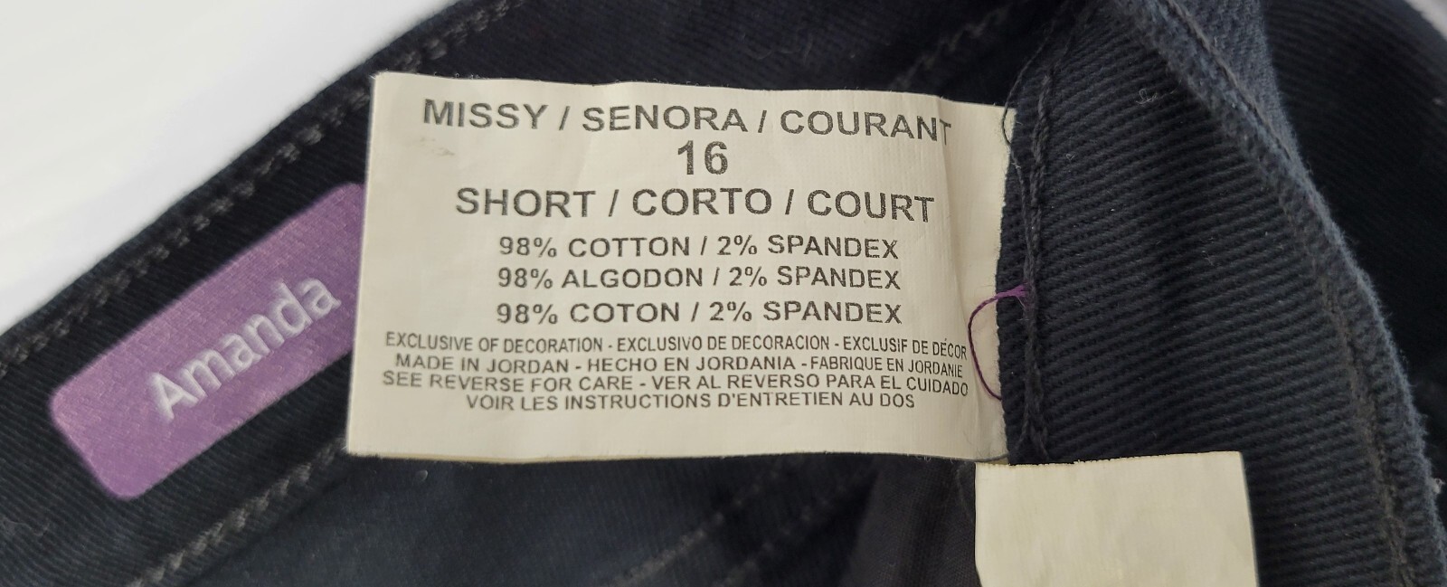 L16) Women's Gloria Vanderbilt Stretch Amanda Black Jeans Pants Size 16 Short
