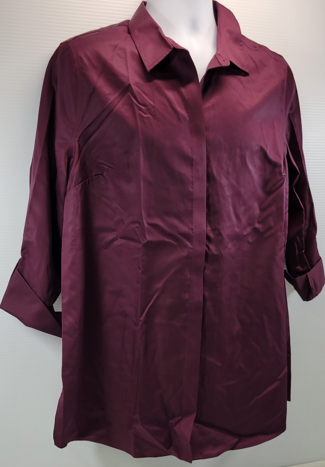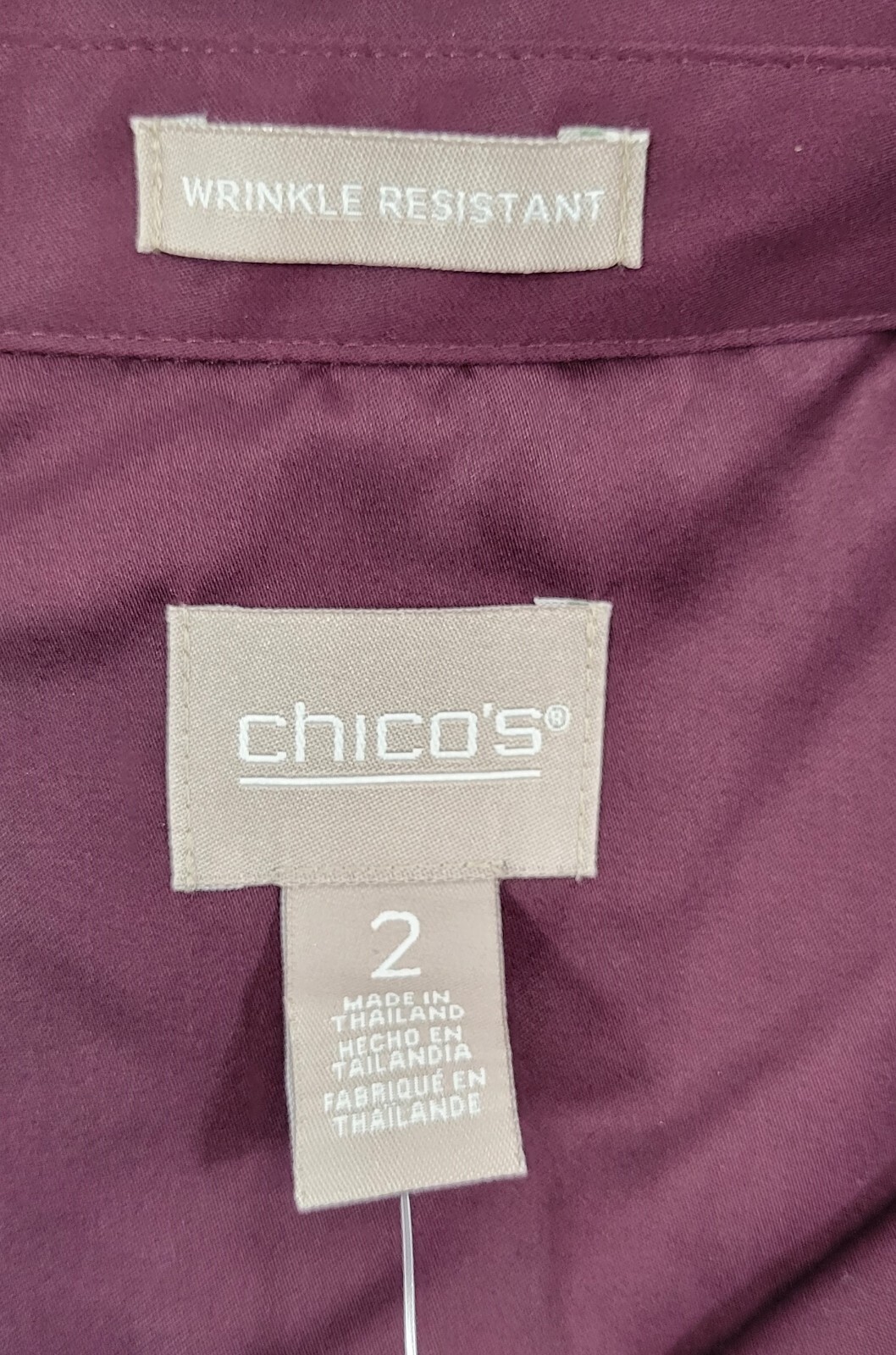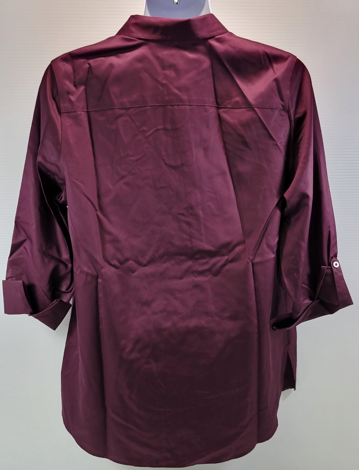 MT) Chico's Women Button Down Sateen Locklyn Burgundy Royal Bordeaux Shirt 2