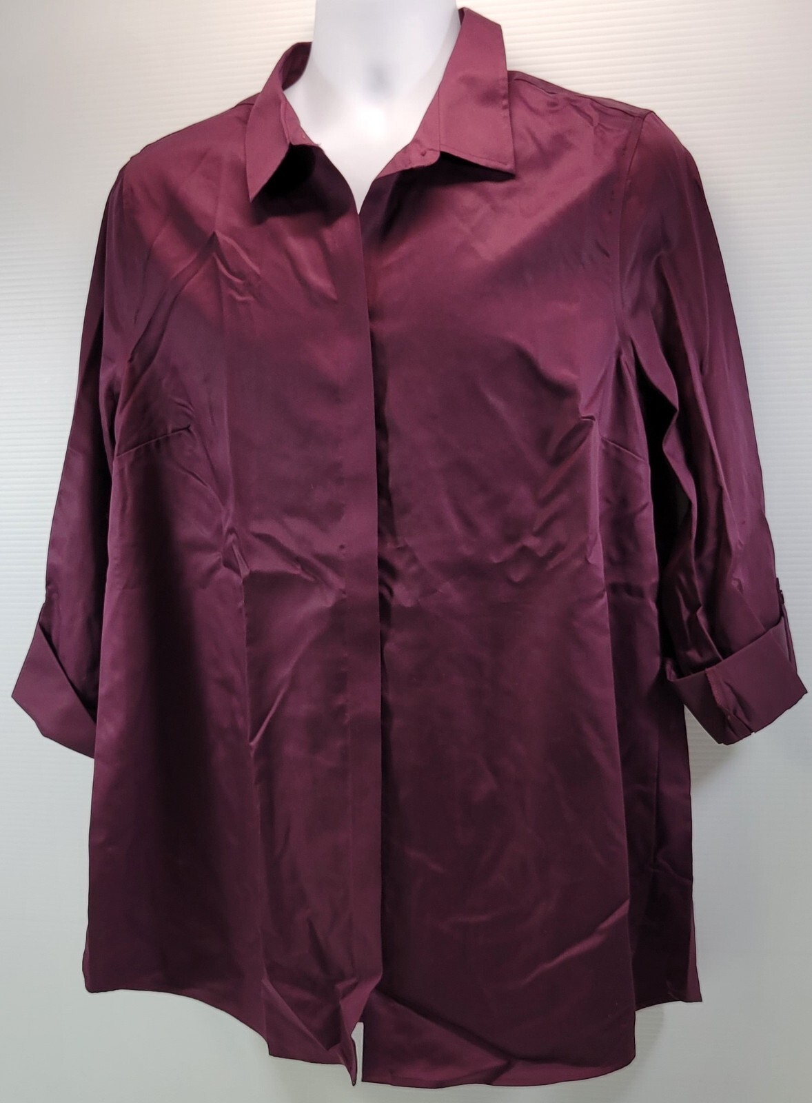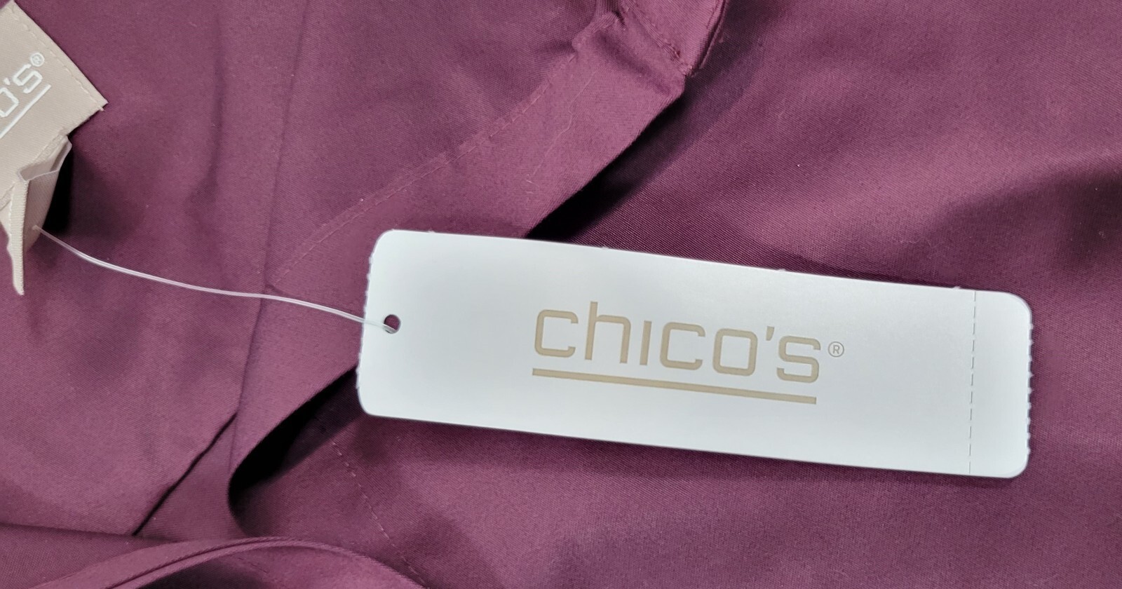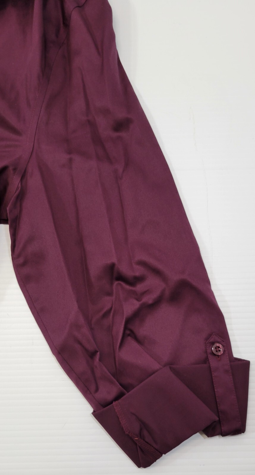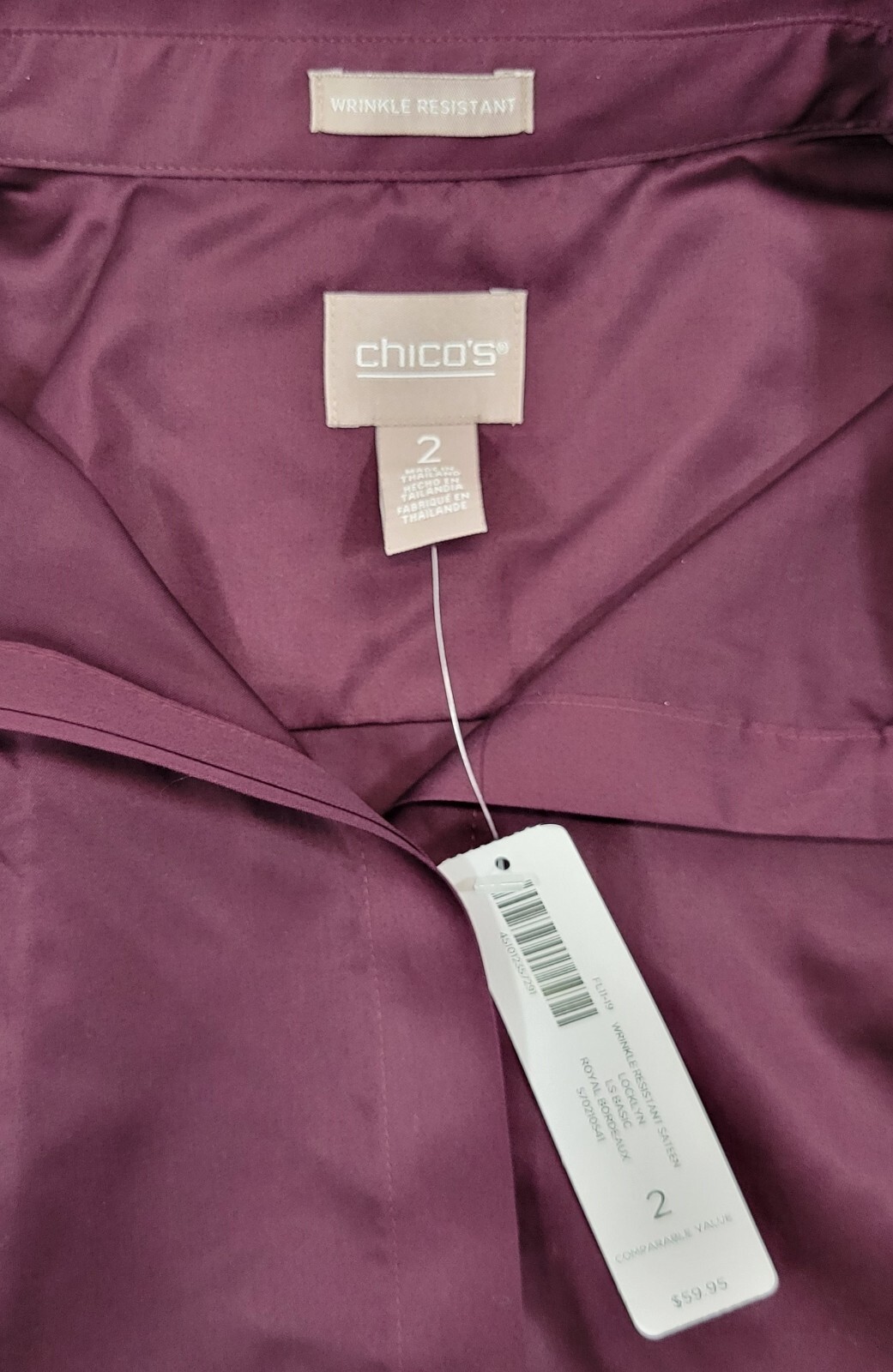 MT) Chico's Women Button Down Sateen Locklyn Burgundy Royal Bordeaux Shirt 2