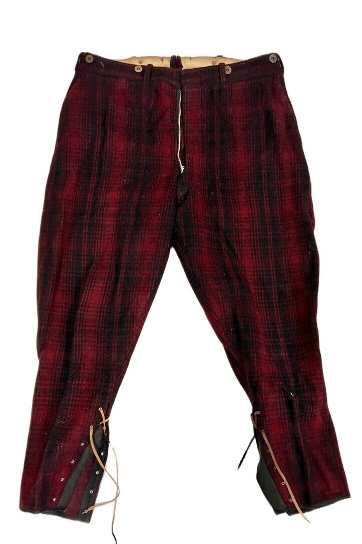 Early vintage WOOLRICH hunting BUFFALO PLAID wool pants 36x29 Talon Zip- in very good as found condition.Lace up jodphur style legs.