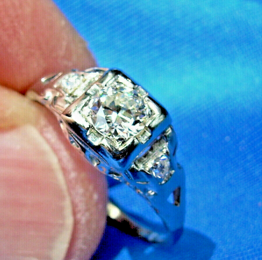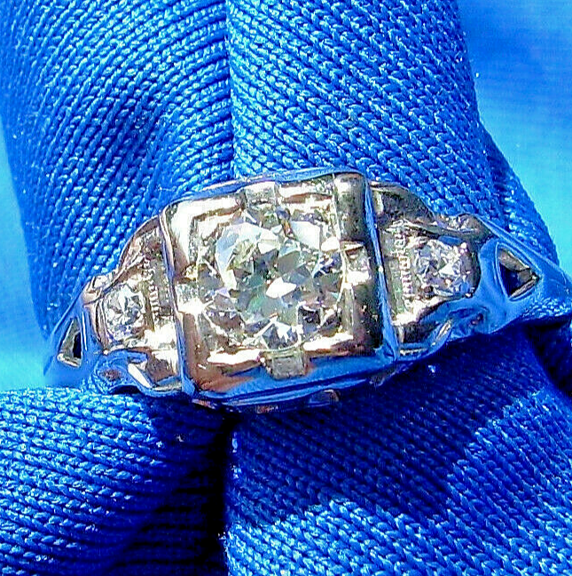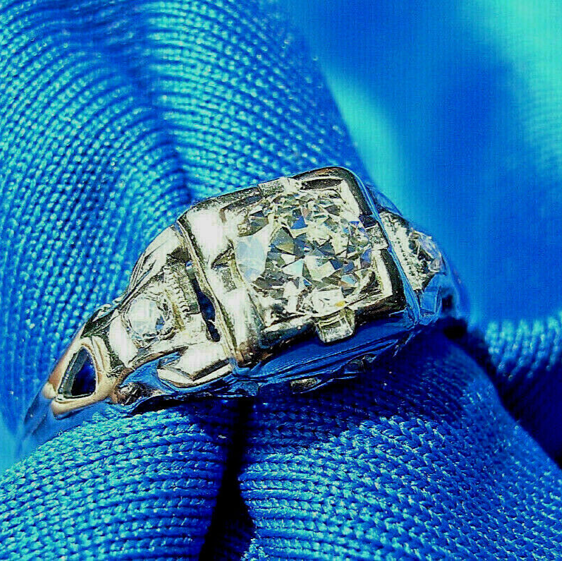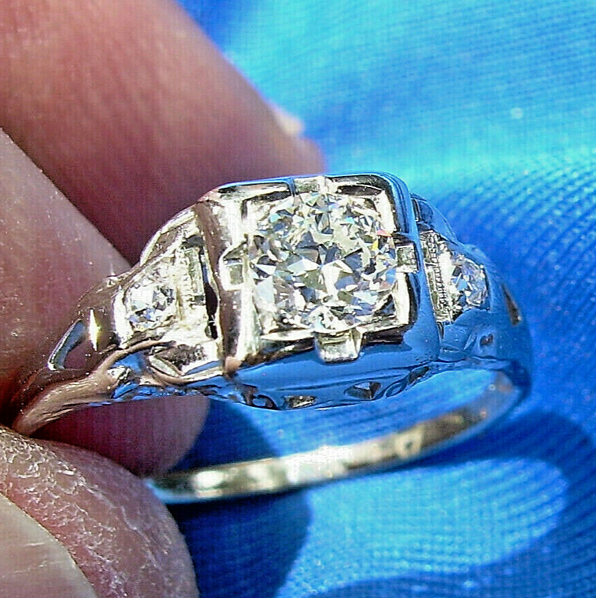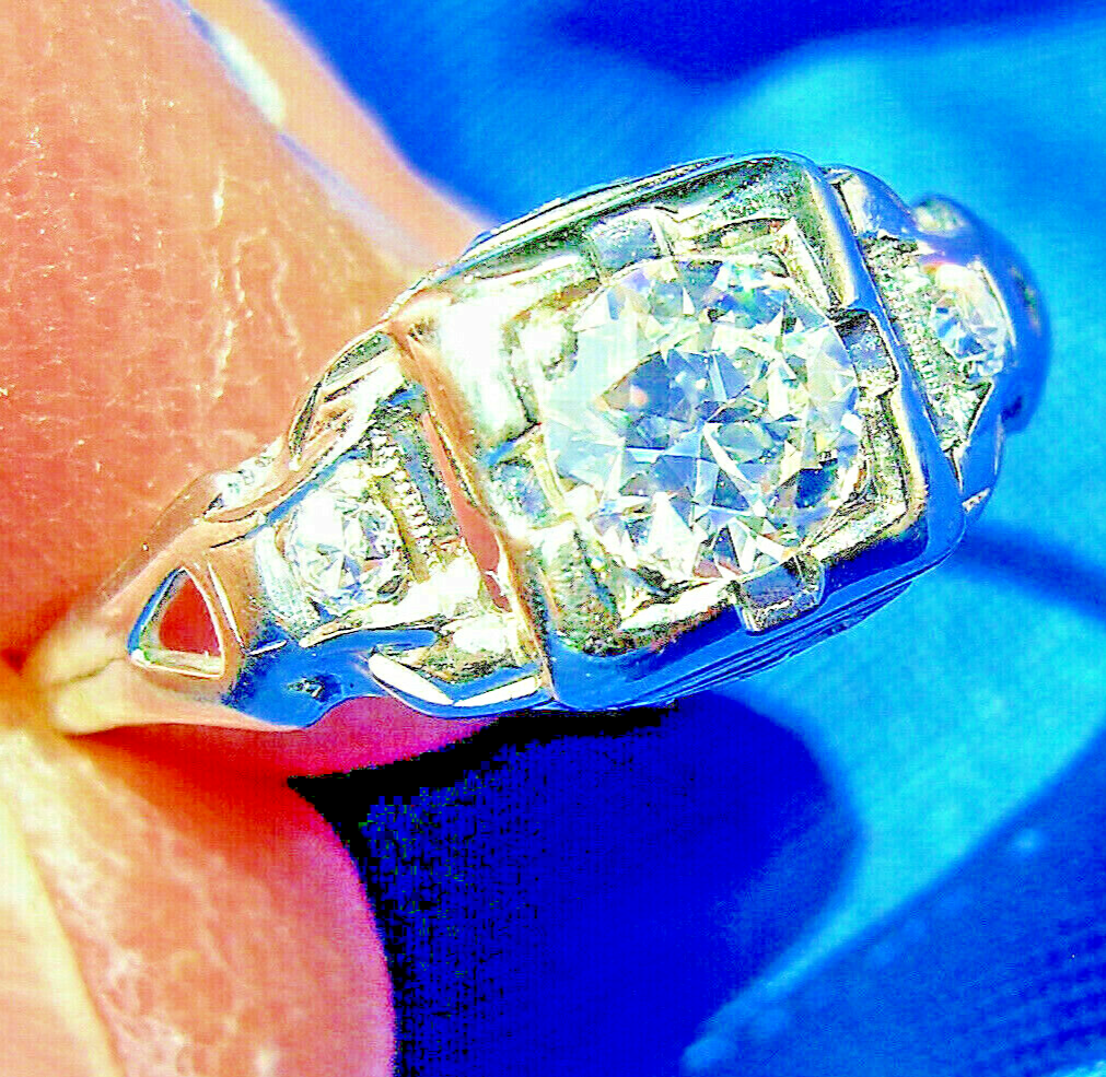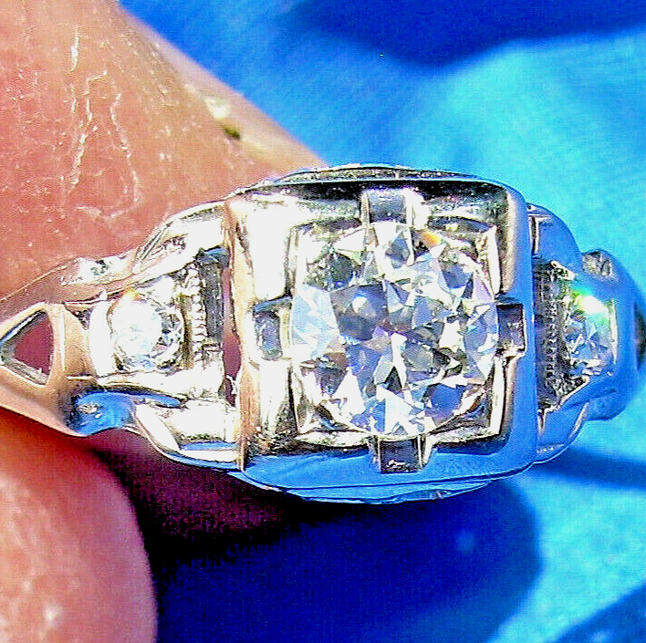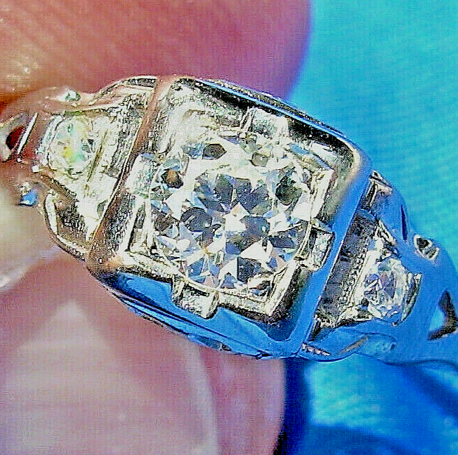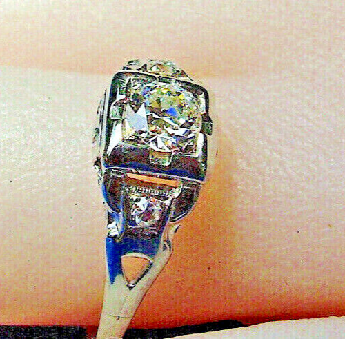 EARTH-MINED DIAMOND EUROPEAN CUT DECO ENGAGEMENT STATEMENT RING.