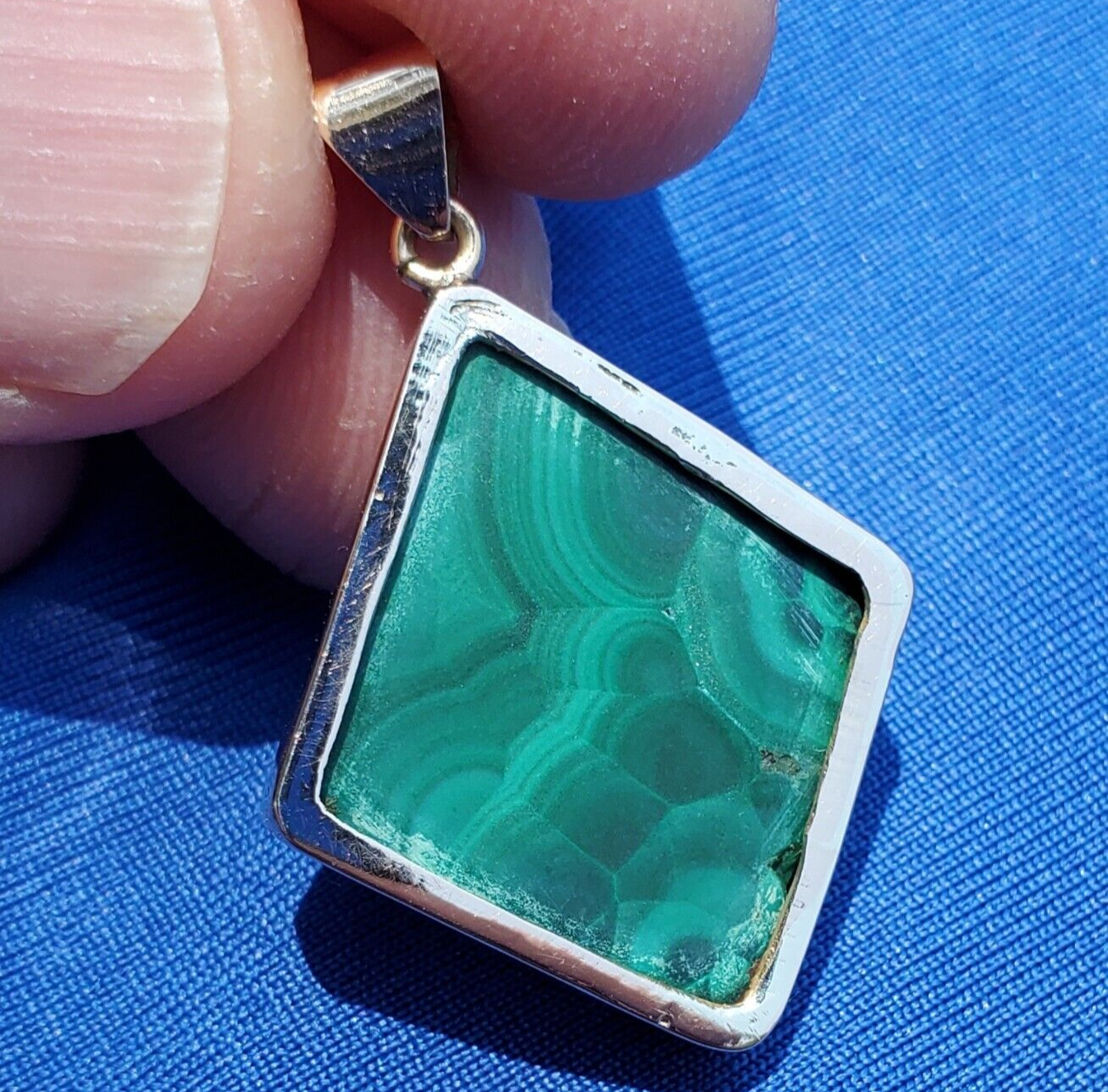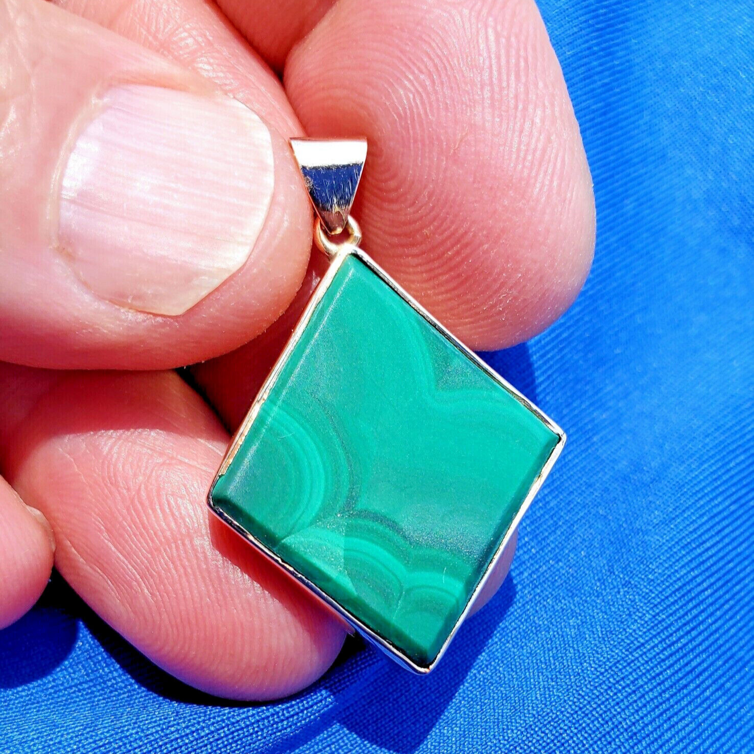 Green Malachite Pendant Elegant Geometric Design Bezel set 14k Medallion Charm