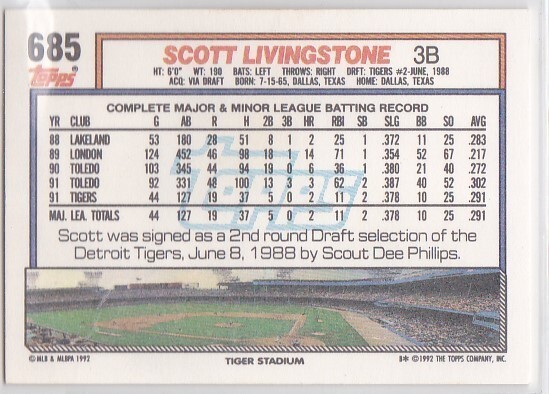 M) 1992 Topps Baseball Trading Card - Scott Livingstone #685