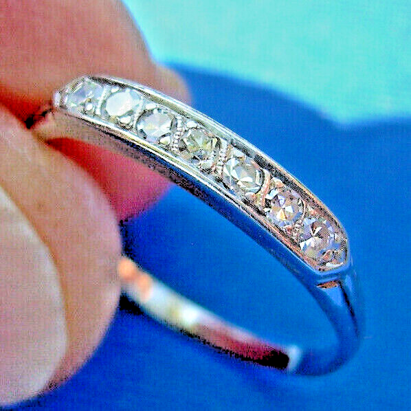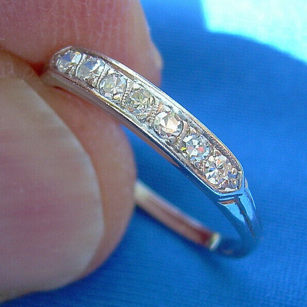 Earth mined Diamond Deco Wedding Band 14k White Gold Antique Bridal Slim Ring 7
