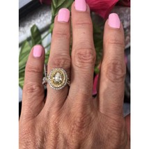 Halo 1.93 CT Oval Débil Diamante Amarillo Anillo Pedida Infinito 18k Oro Blanco