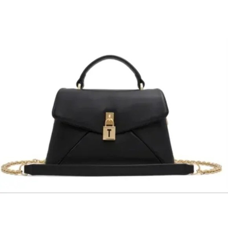 Elevate your style with this brand-new, Ted Baker Poppy satchel. Crafted from luxurious nappa leather, this versatile bag transitions effortlessly from day to night. It features a chic T locket and elegant gold-tone hardware. The dual carrying options?a top handle and a removable chain/leather strap?offer both sophisticated and casual looks. This compact yet functional satchel is a timeless addition to any collection.