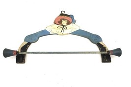 VTG 1930s WOODEN TOWEL RACK SHABBY CHIC Bonnet Girl Boudoir COTTAGE Hand Painted